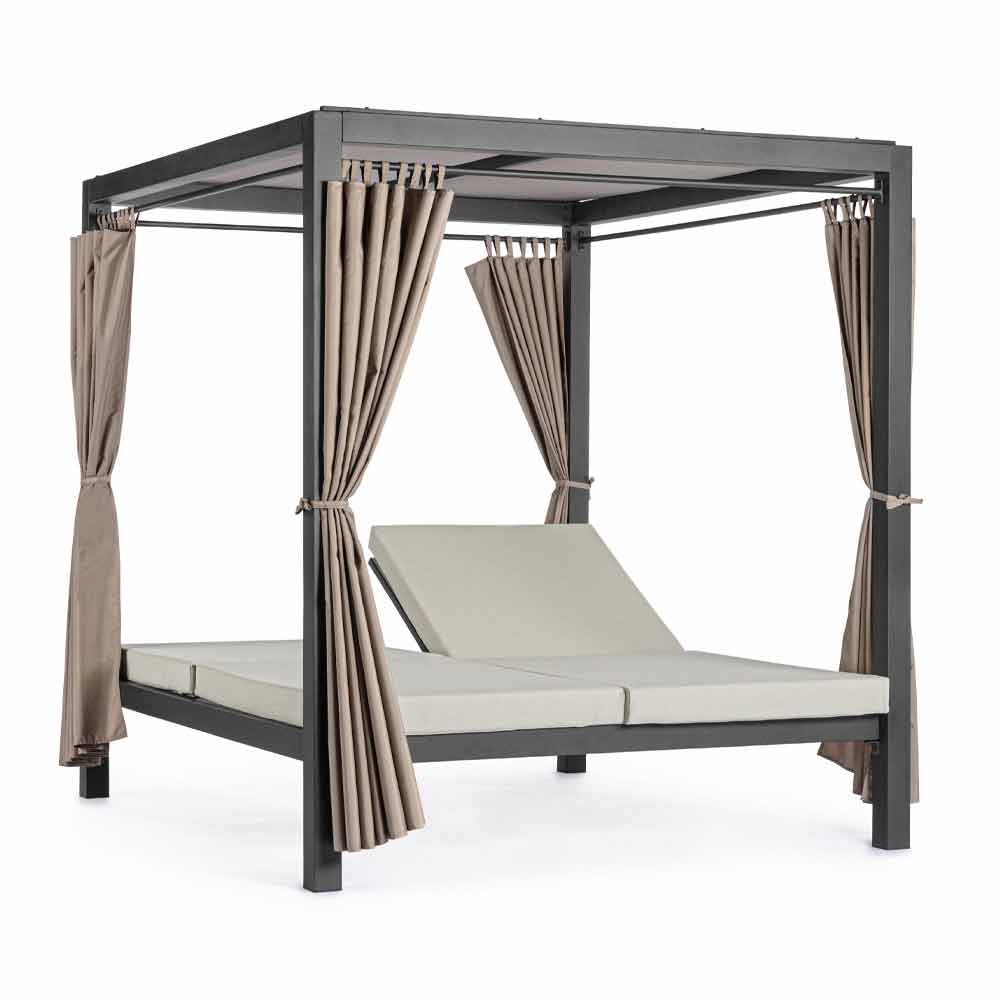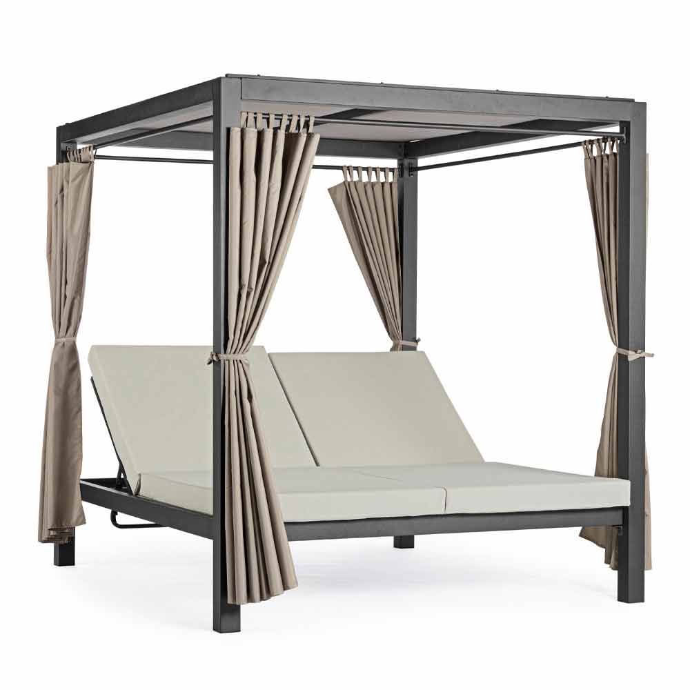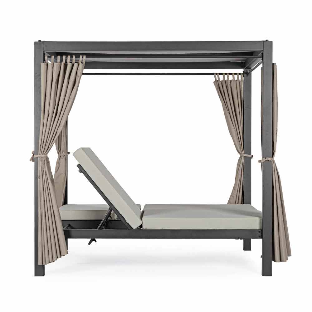 Venkovní lehátko z hliníku a textilu se sklopnými opěradly.
