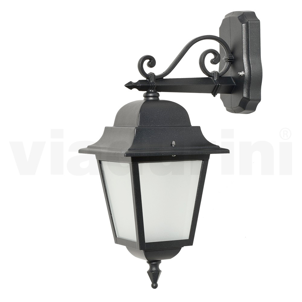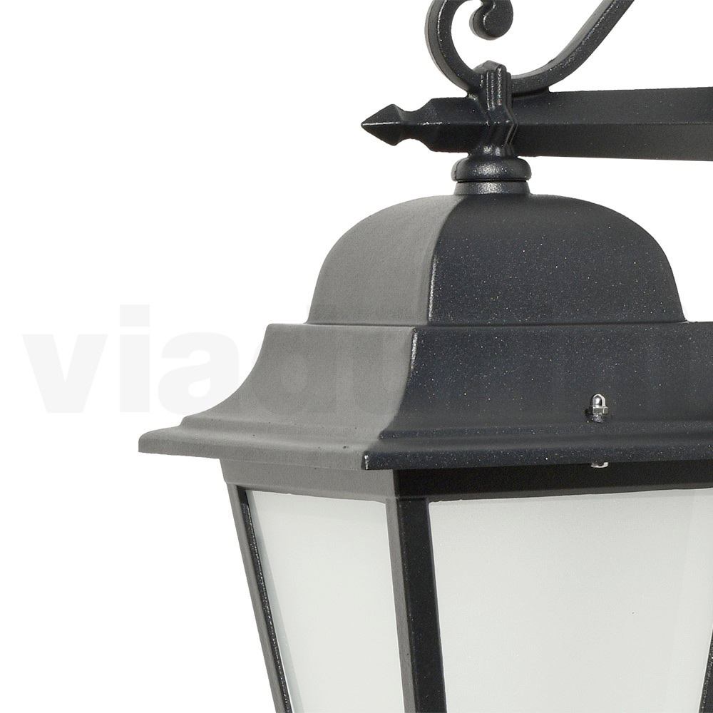 Zahradní lampa vyrobená z tlakově litého hliníku s antracitovou povrchovou úpravou a difuzorem z pískovaného skla , celá vyrobena v Itálii.