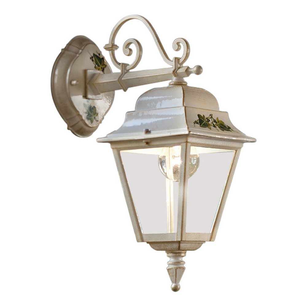 Toto venkovní nástěnné svítidlo je celé vyrobeno z bílého hliníku zdobeného ručně malovaným břečťanem pro klasický a harmonický styl mezi tvarem a barvami.