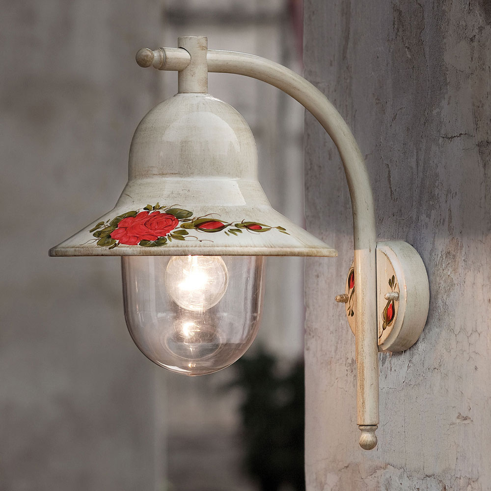Toto zahradní nástěnné svítidlo je celé vyrobeno ze stínovaného bílého hliníku a zdobeno ručně malovanými květinami pro klasický a harmonický styl mezi tvarem a barvami.