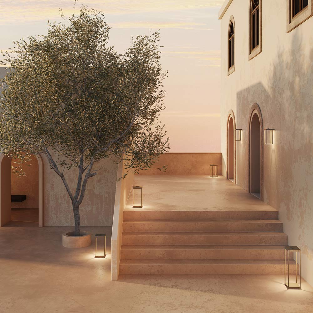 Venkovní nástěnné svítidlo ze starožitné mosazi a stmívatelné světlo Made in Italy