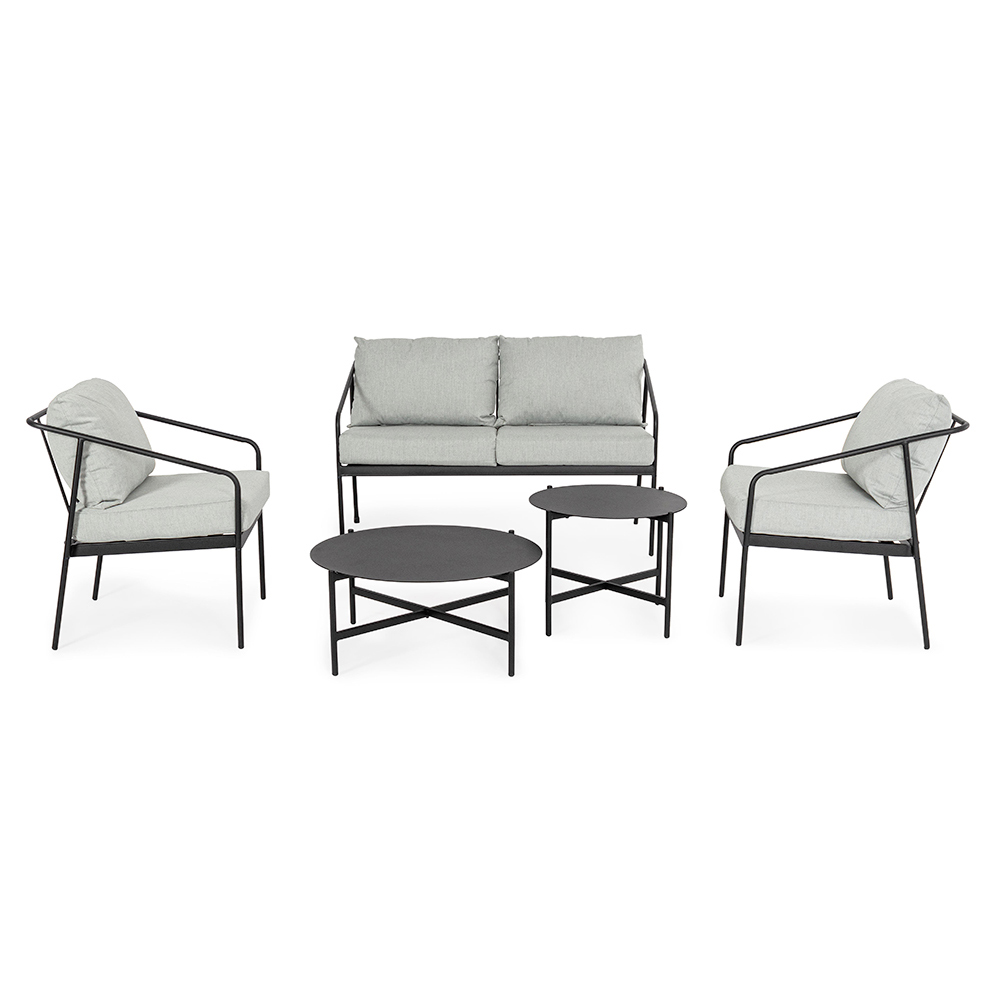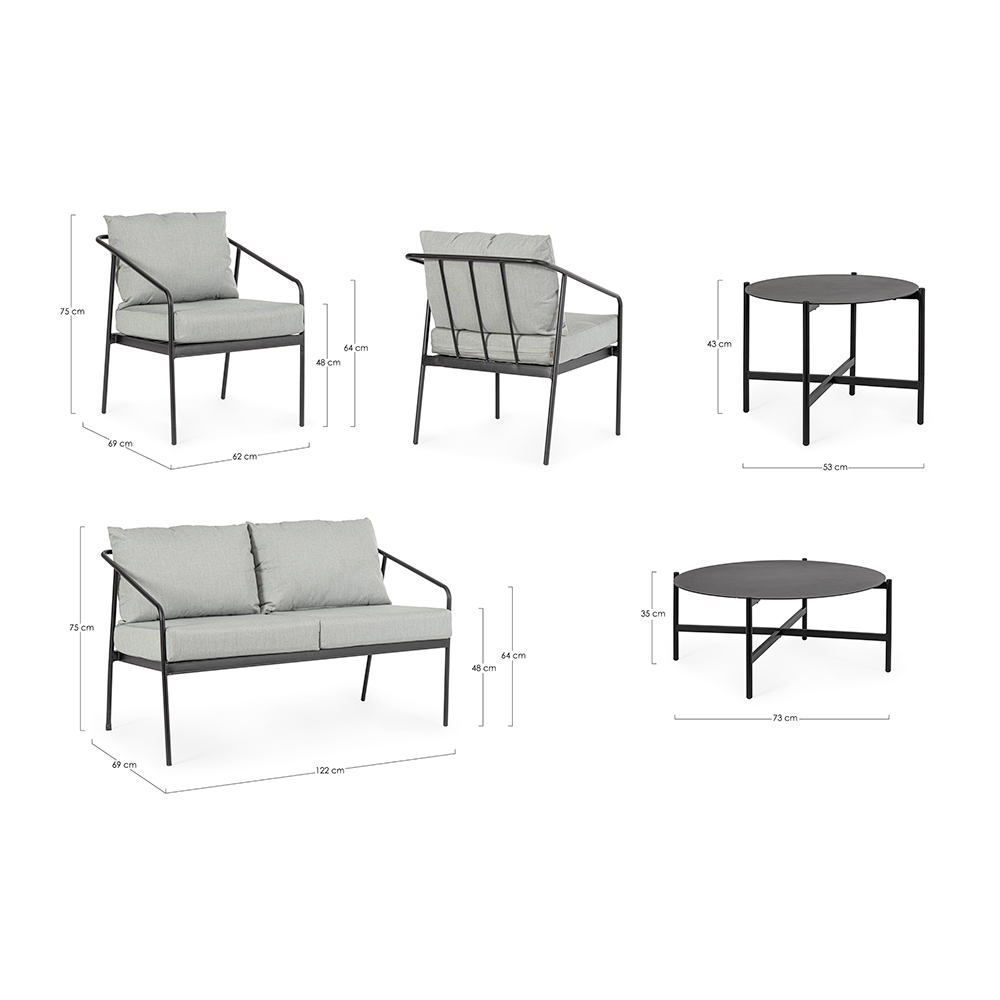 Tato sada zahradního lehátka je skutečnou ódou na moderní design a venkovní pohodlí . Každý kus, od jednotlivých křesel až po dvoumístnou pohovku , byl navržen tak, aby nabízel jedinečný relaxační zážitek, a to díky měkkým polštářům sedadel a opěradel, které se přizpůsobí každé krajině nebo stylu venkovního nábytku. Ocelová konstrukce je robustní a navržená tak, aby odolala v průběhu času, ale klikatý tvar dává soupravě vizuální lehkost, která zlepšuje prostředí , aniž by ji zatěžovala.
