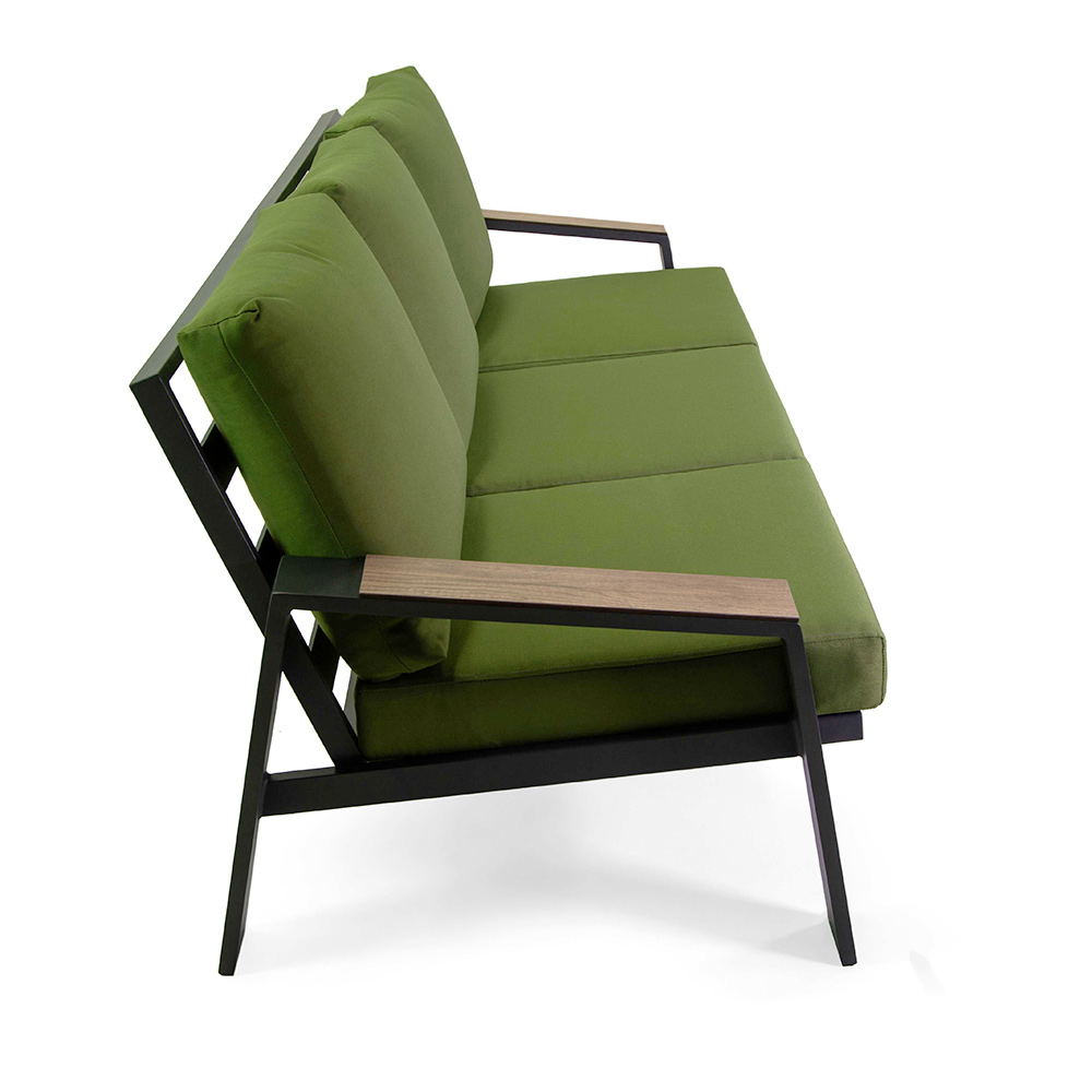 Tato olivově zelená hliníková lounge souprava , obohacená o luxusně polstrované polštáře , nabízí svěží a přirozenou atmosféru pro váš venkovní prostor. Souprava obsahuje třímístnou pohovku , dvě jednotlivá křesla a robustní kavárenský stolek s deskou HPL s dřevěným efektem, který je ideální pro vytvoření elegantního a příjemného konverzačního koutku na vaší zahradě nebo terase. Moderní design s čistými liniemi a jasnými barvami se dokonale začlení do jakéhokoli venkovního kontextu a dodá mu styl a pohodlí.