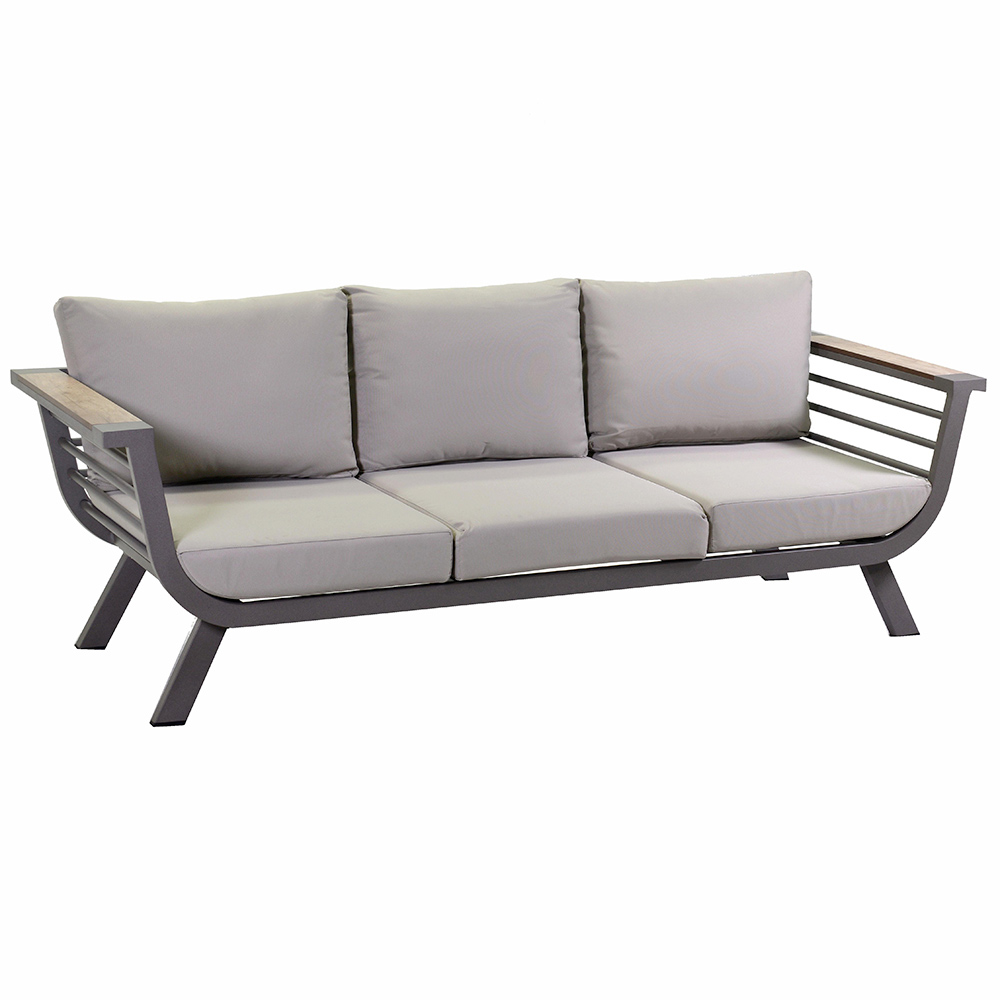 1 pohovka : hliníkový rám s práškovou povrchovou úpravou, sedák a opěradlo ze 100% polyesterové tkaniny 240g/m o tloušťce 12 cm