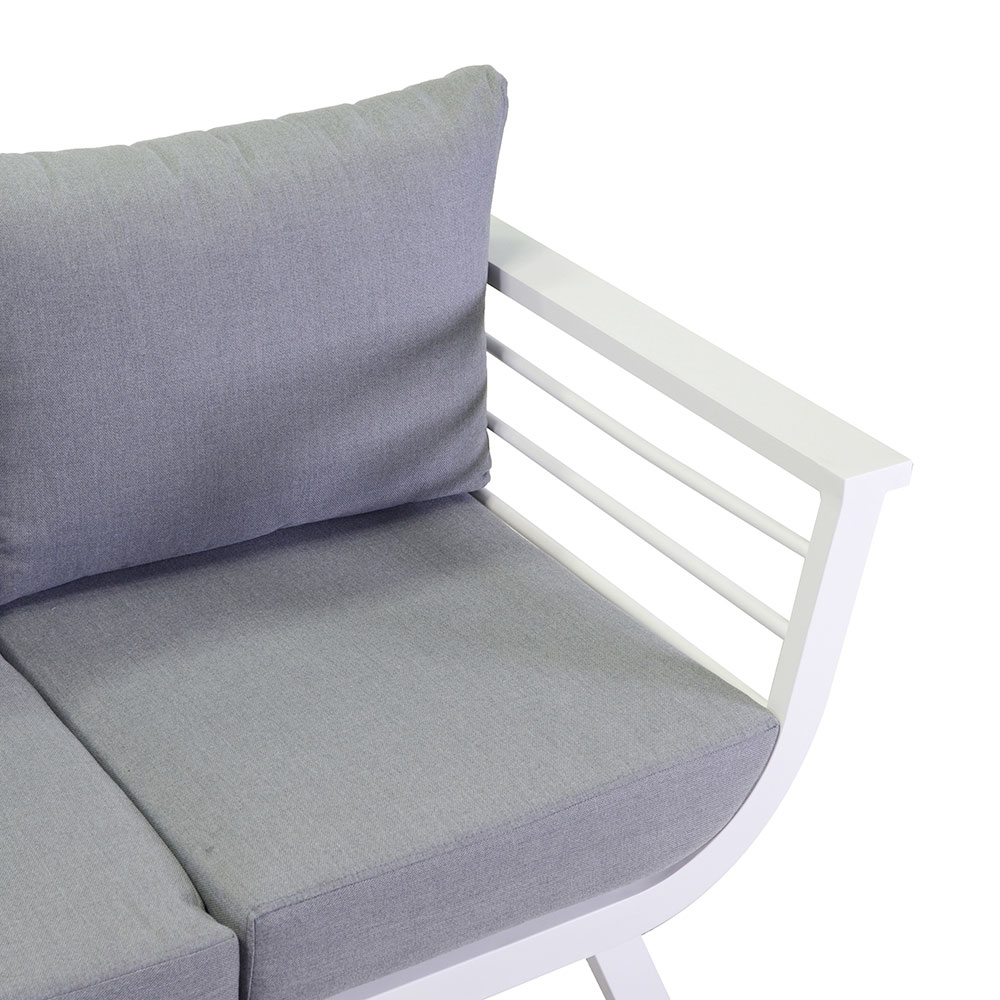 - bílý hliník a šedé polštáře