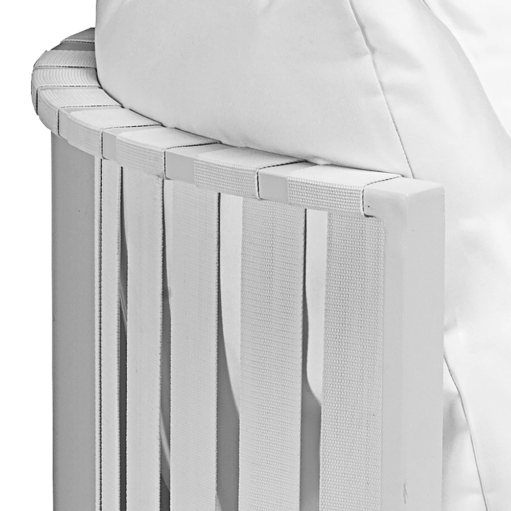 venkovní pohovky se vyznačuje střídáním plných a prázdných prostorů, což vytváří světlý a současný vizuální vzhled.