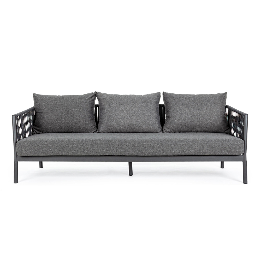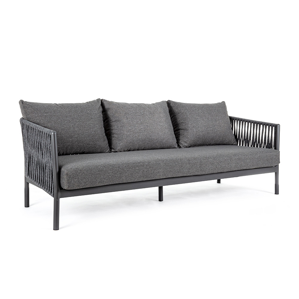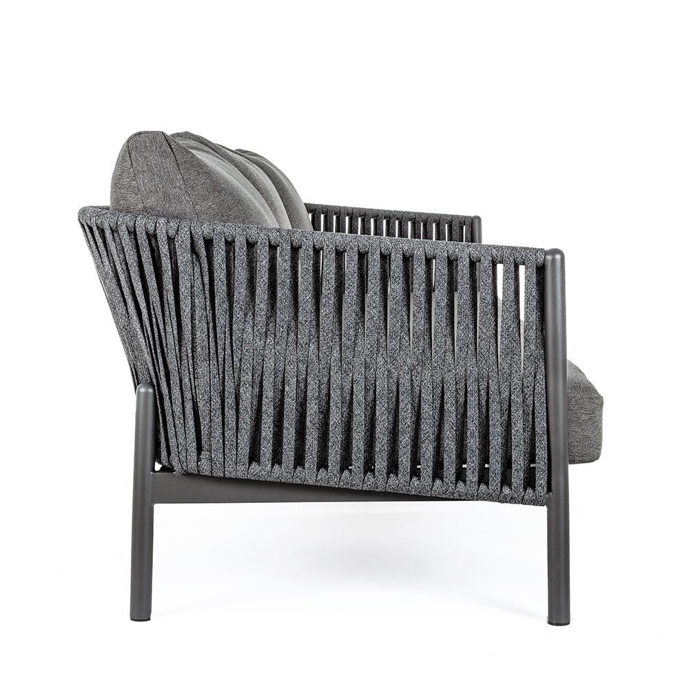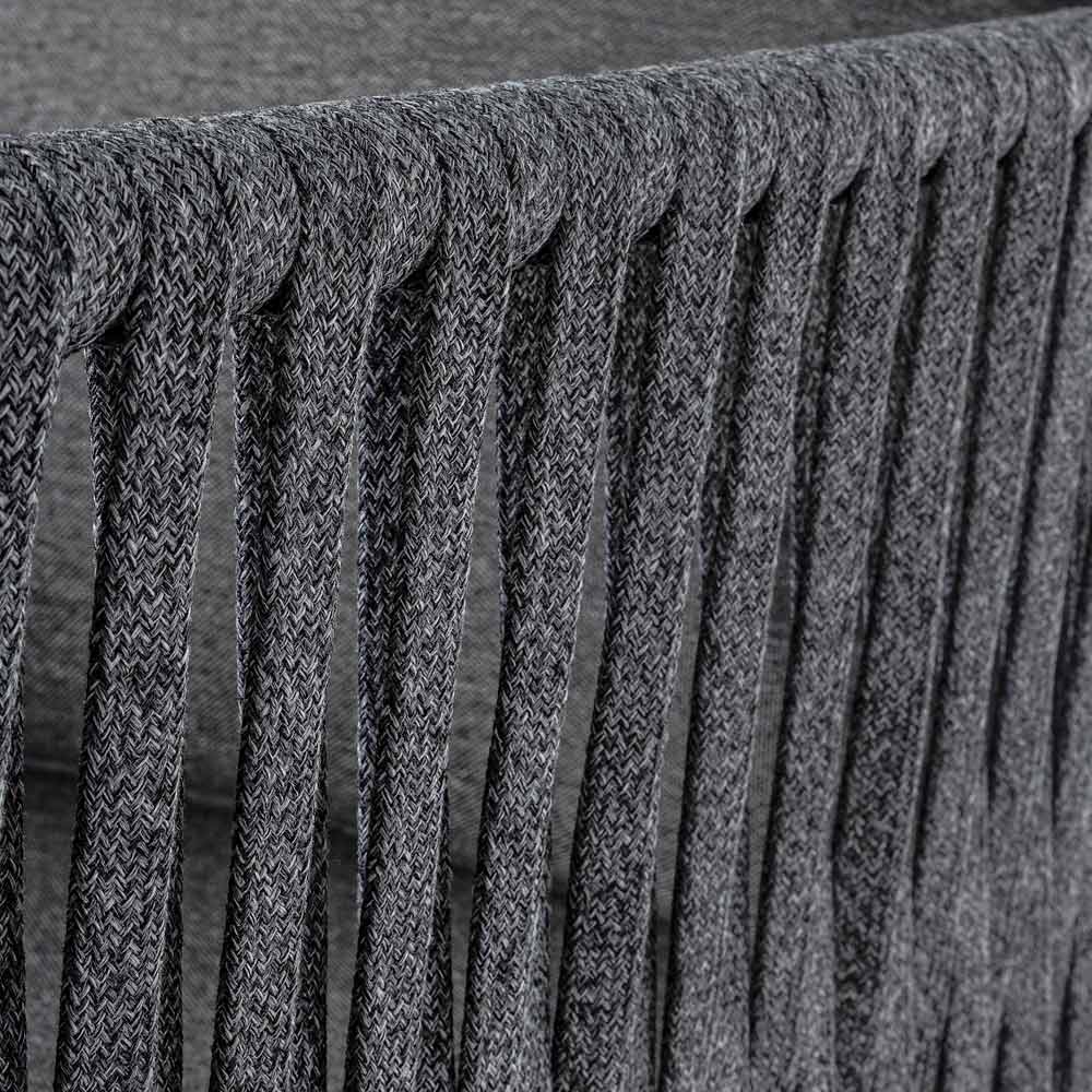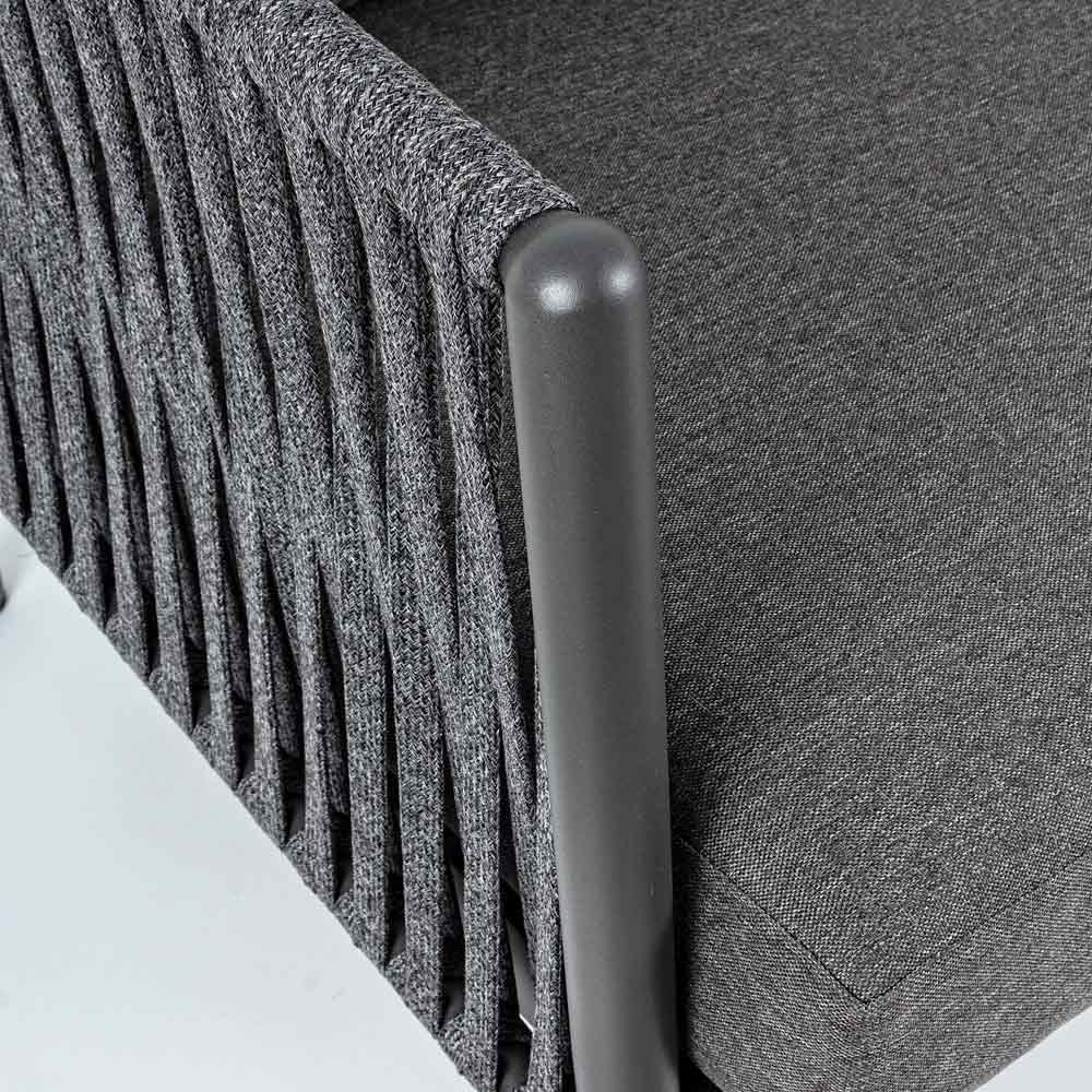 Práškově lakovaná hliníková konstrukce (polyester). Tkané šňůrami Tetoron (100% polyester). Polštáře sedáku a opěradla s odnímatelnými potahy s látkou Olefin (100% polypropylen).