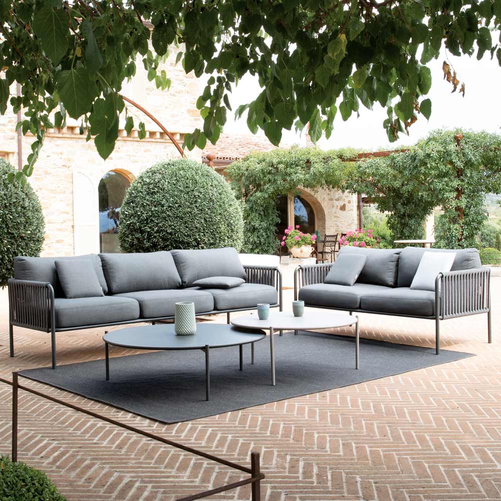 Zahradní pohovka z oceli a lana různých velikostí s polštáři. Vyrobeno v Itálii.