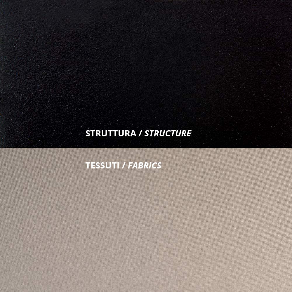 měkkými a minimalistickými profily zdůrazňuje jednoduchost objemů kombinací základních kovových konstrukcí a měkkých polštářů pro