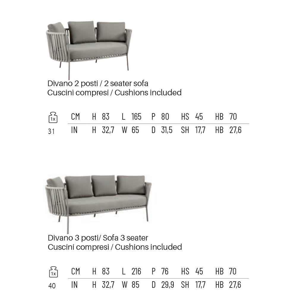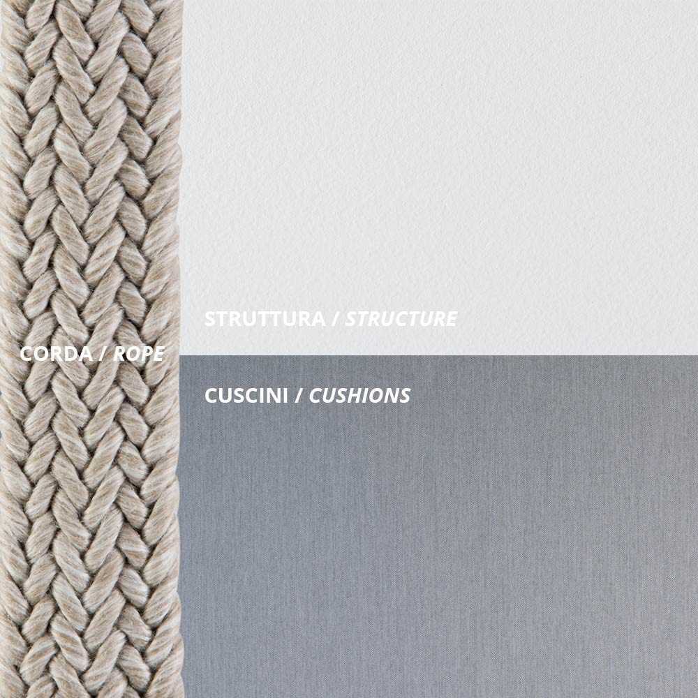 Venkovní pohovka z oceli a lana různých velikostí s polštáři. Vyrobeno v Itálii.