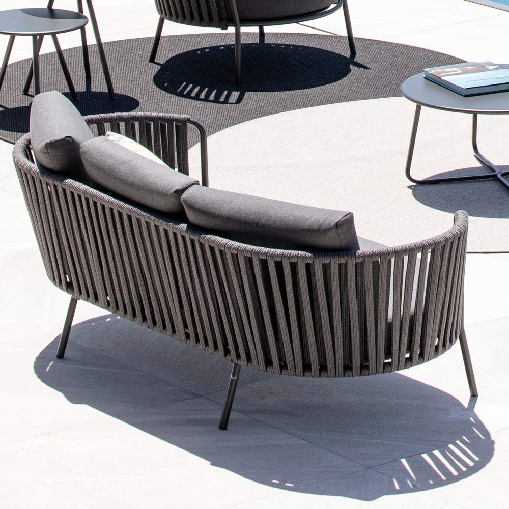 odolnost povrchové úpravy vůči korozivním atmosférickým vlivům, zatímco lano je odolné vůči chlóru, slunečnímu záření a plísním. Polštáře jsou vyrobeny z materiálu odolného vůči UV záření a vodě, který si dlouhodobě zachovává barvu, díky čemuž je pohovka perfektním prvkem pro doplnění jakéhokoli venkovního prostředí.