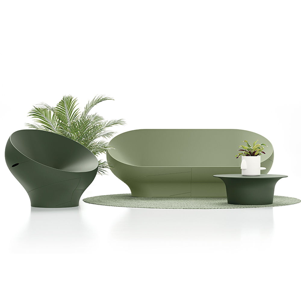 Toto křeslo vyniká svými měkkými, obklopujícími liniemi , inspirovanými přírodními tvary, které vytvářejí harmonický a moderní vizuální efekt. Kompaktní, plynulá monobloková konstrukce dodává prostorům charakter a zároveň si zachovává jednoduchou a elegantní estetiku.