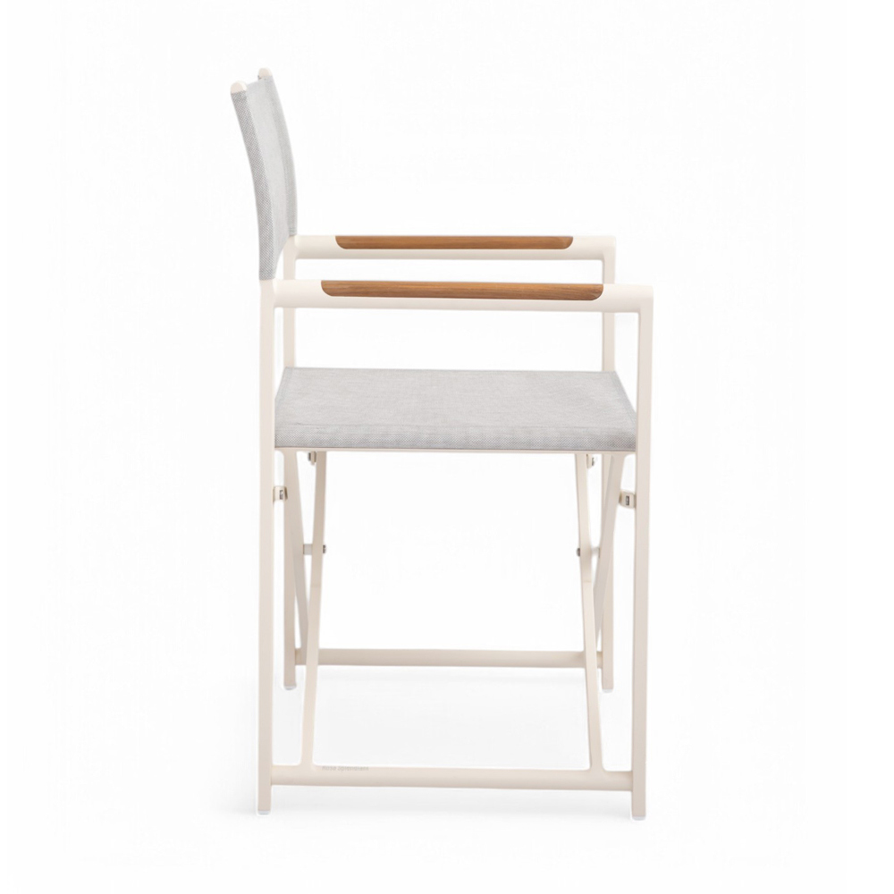 Vneste do svého venkovního prostoru nádech elegance a praktičnosti s touto venkovní ředitelskou židlí . Tato židle je vyrobena z robustního hliníkového rámu s práškovou povrchovou úpravou a je navržena tak, aby odolávala přírodním vlivům, aniž by to bylo na úkor stylu.