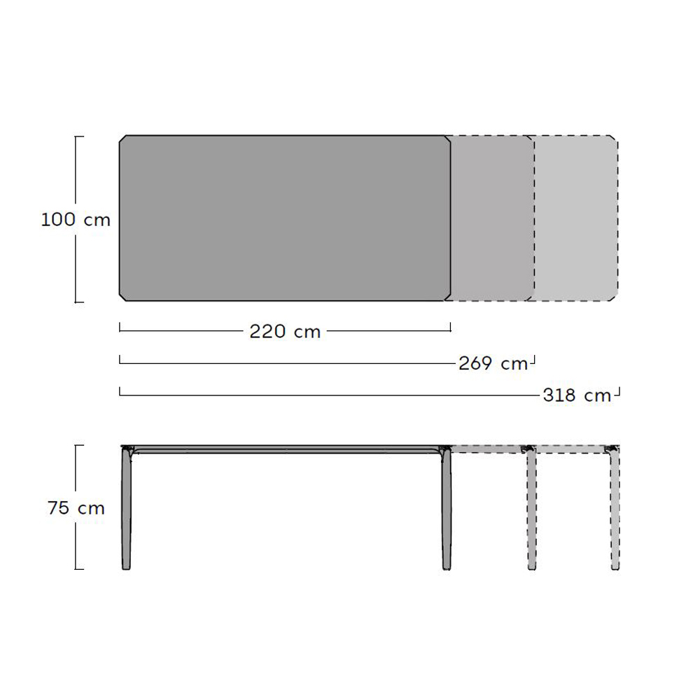 Jídelní stůl rozšiřitelný na venkovní design 318 cm v hliníkové a kameniny v různých povrchových úpravách, vyrobený v Itálii.