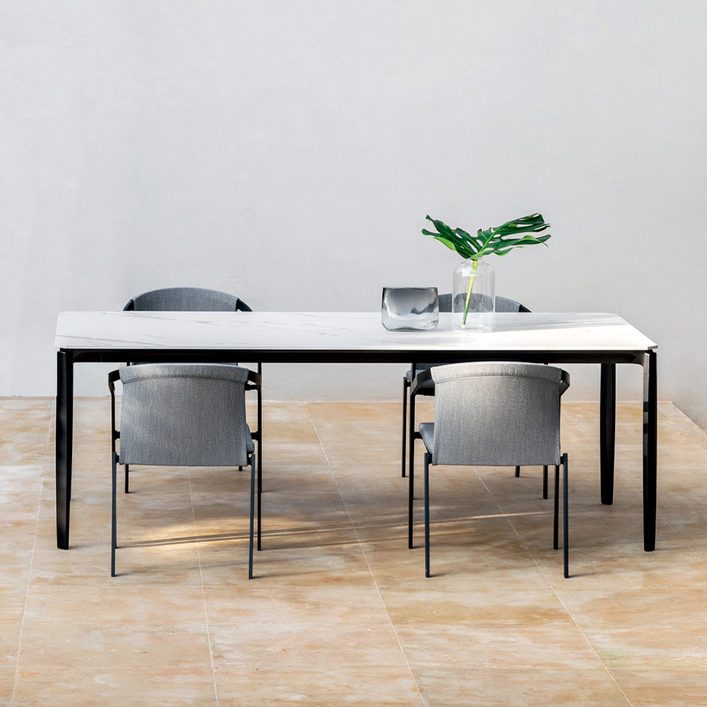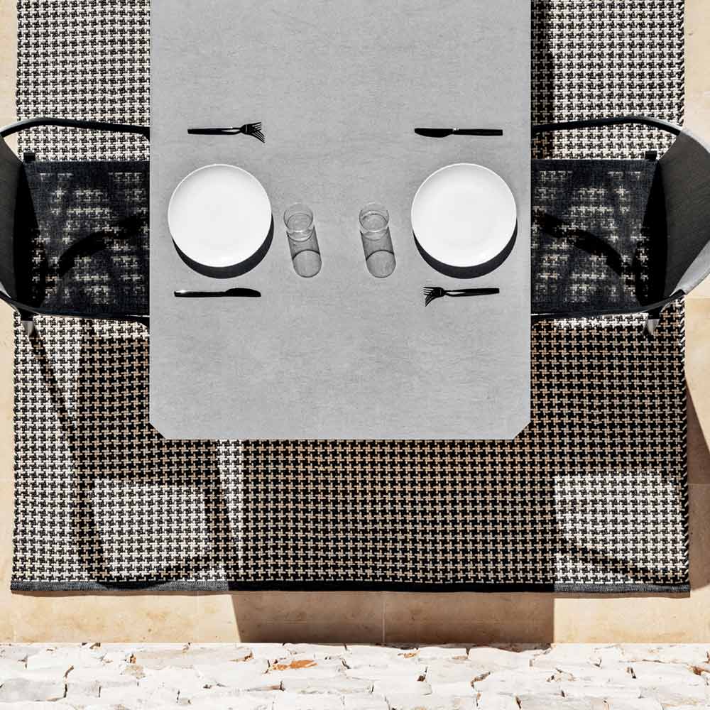 zahradnímu jídelnímu stolu rafinovaný design, který jej odlišuje a přizpůsobuje jeho formální vyrovnanosti.