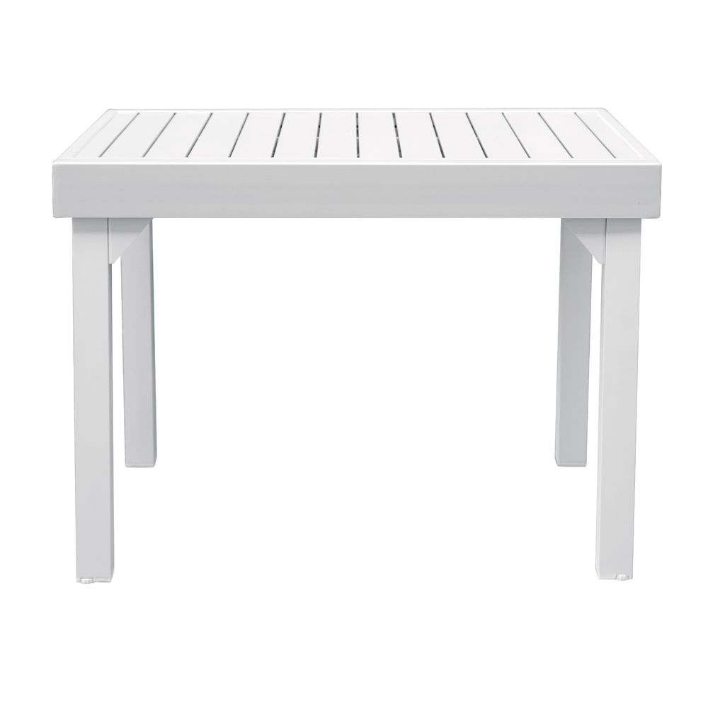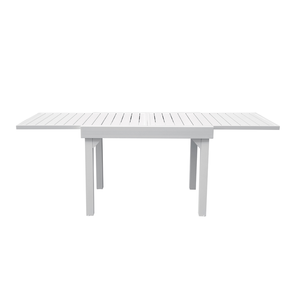Vneste do svých venkovních prostor styl a funkčnost s tímto bílým hliníkovým stolem s moderním, minimalistickým designem. Jeho lamelová deska mu dodává nejen elegantní vzhled, ale je také praktický, odolný a snadno se čistí.