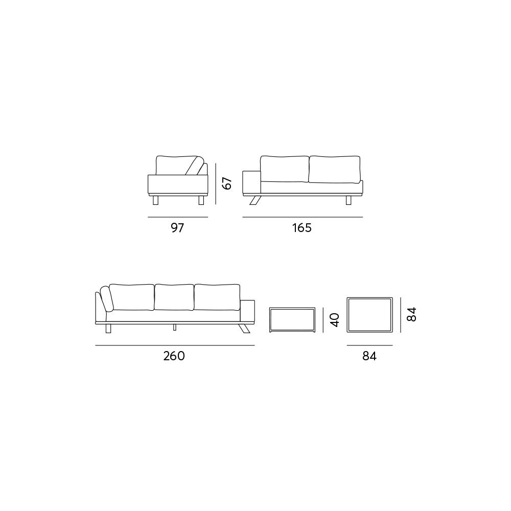 Rozměry:- dvoumístná pohovka: Š 165 x H 97 x V 67 cm;