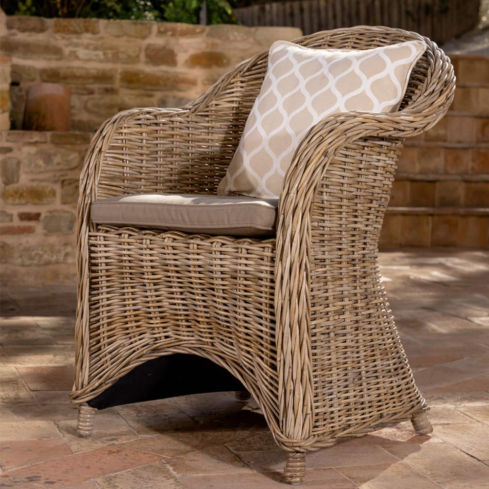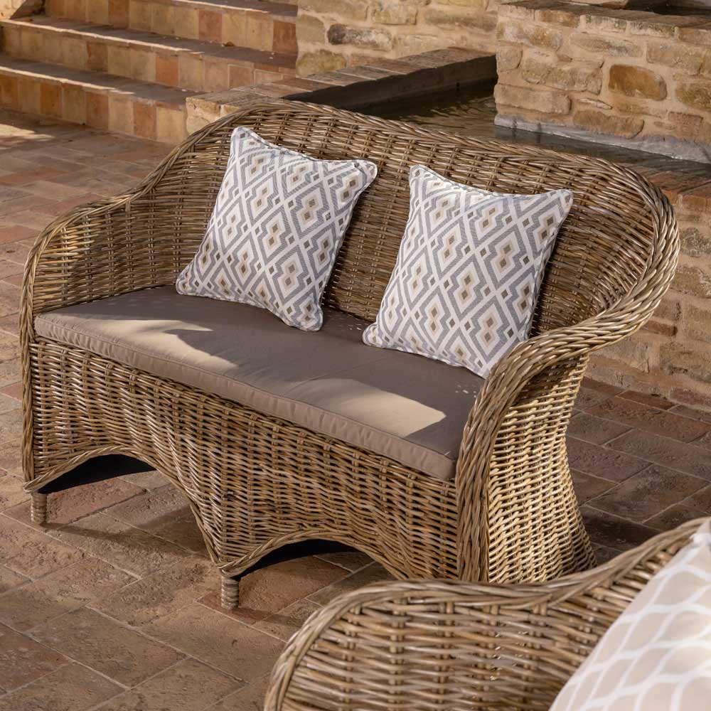 Zahradní lounge set skládající se z 2 křesel , pohovky a kavárenského stolku z ručně tkaného kubu se standardními sedacími polštáři v ceně v standardním " šedém " provedení. Kubu je přírodní materiál, který patří mezi nejodolnější z těch, které se vyskytují v přírodě, ale který zůstává vždy velmi lehký .