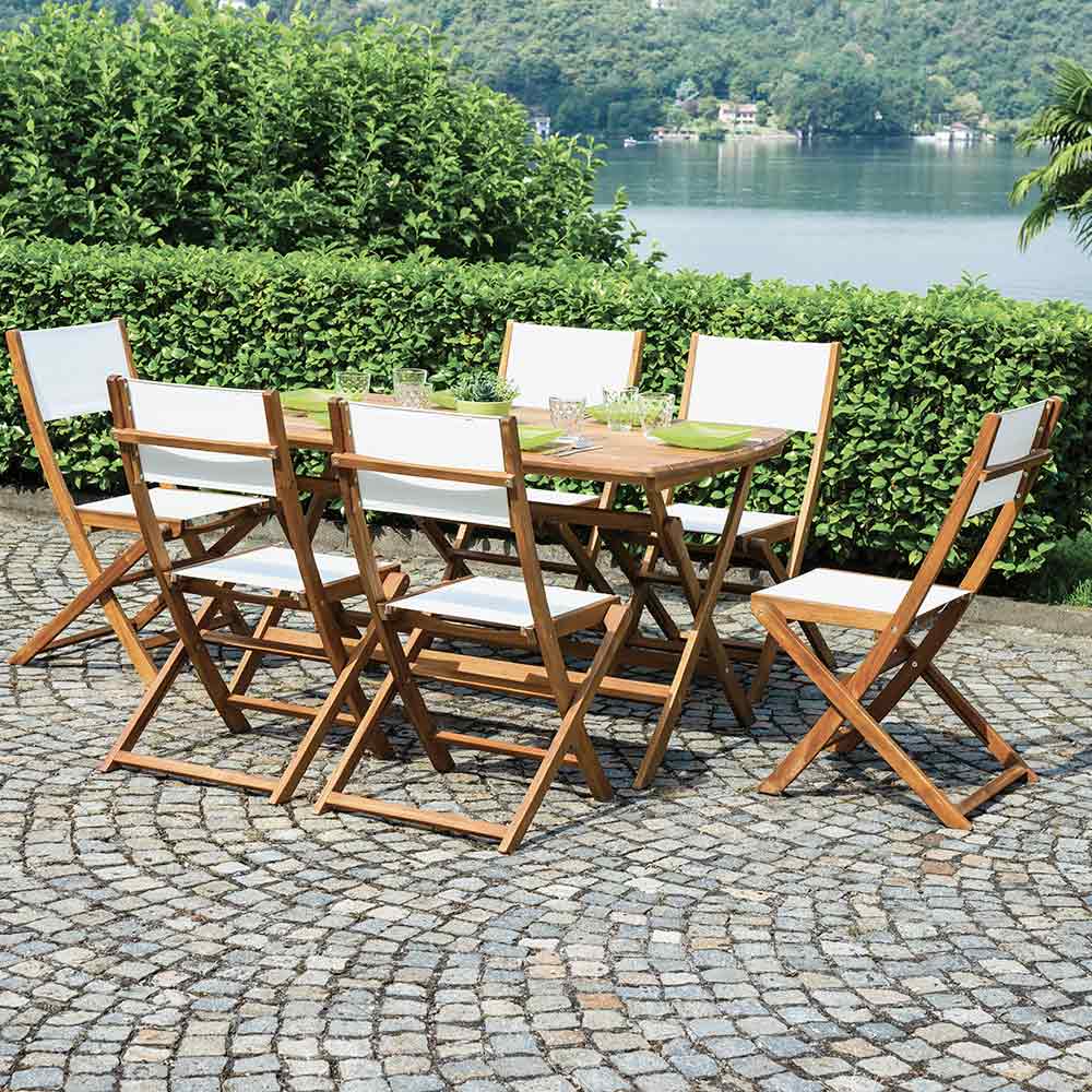 Akátové dřevo , známé svou trvanlivostí a odolností vůči povětrnostním vlivům, zajišťuje, že si tato židle zachová svou přirozenou krásu a strukturální integritu v průběhu času. Sedák a opěrák z ecru textilu , inovativního a odolného materiálu, dodávají nádech modernosti a svěžesti a harmonicky se začleňují do každého venkovního prostředí.