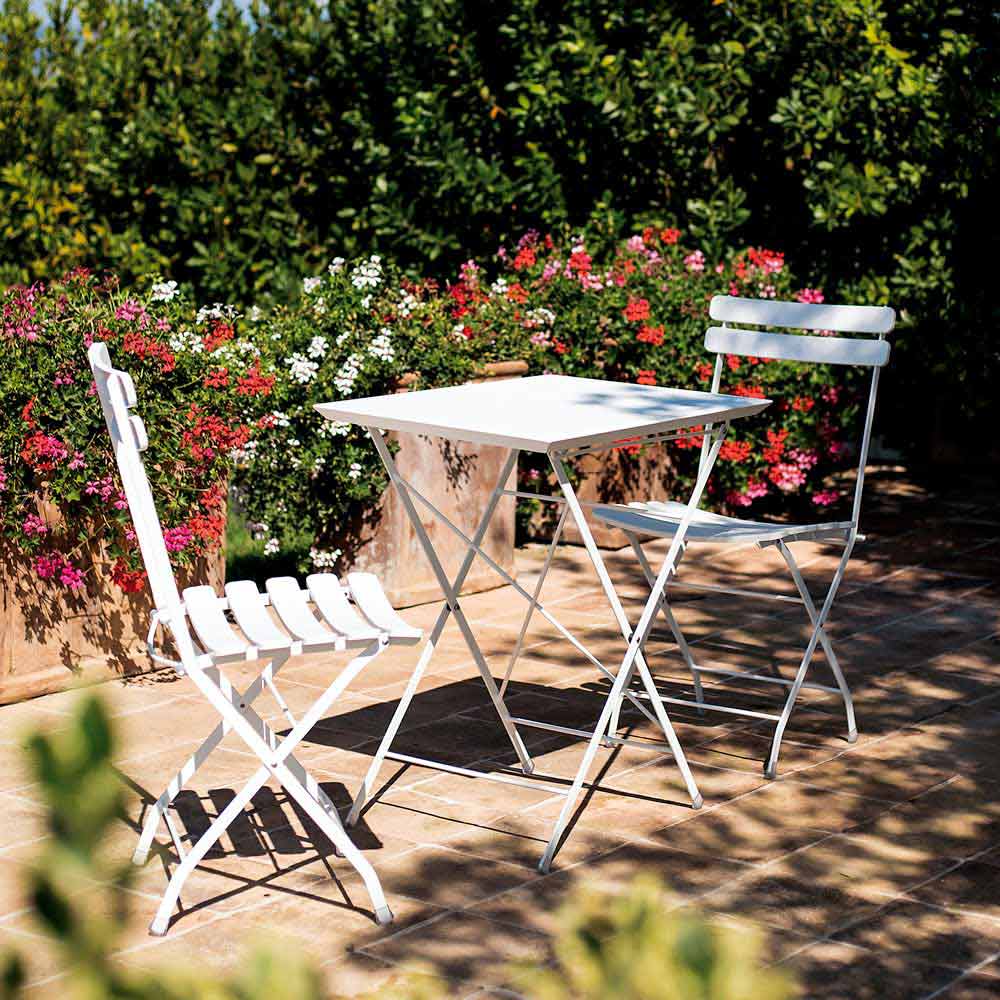 práškově lakované pozinkované oceli natřené termosetovými prášky, které jí dodávají pevnost a robustnost. To spolu s minimalistickým designem a lehkými liniemi činí židli praktickou a lehkou. Díky široké škále dostupných barev a možnosti složení pro větší optimalizaci prostoru se tato židle dokonale hodí do jakékoli venkovní situace, od soukromých prostor, jako jsou zahrady a terasy, až po prostředí, jako jsou bary a restaurace.