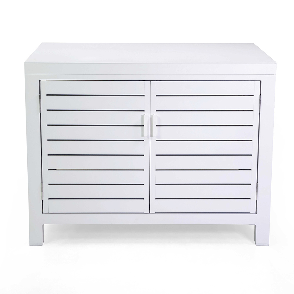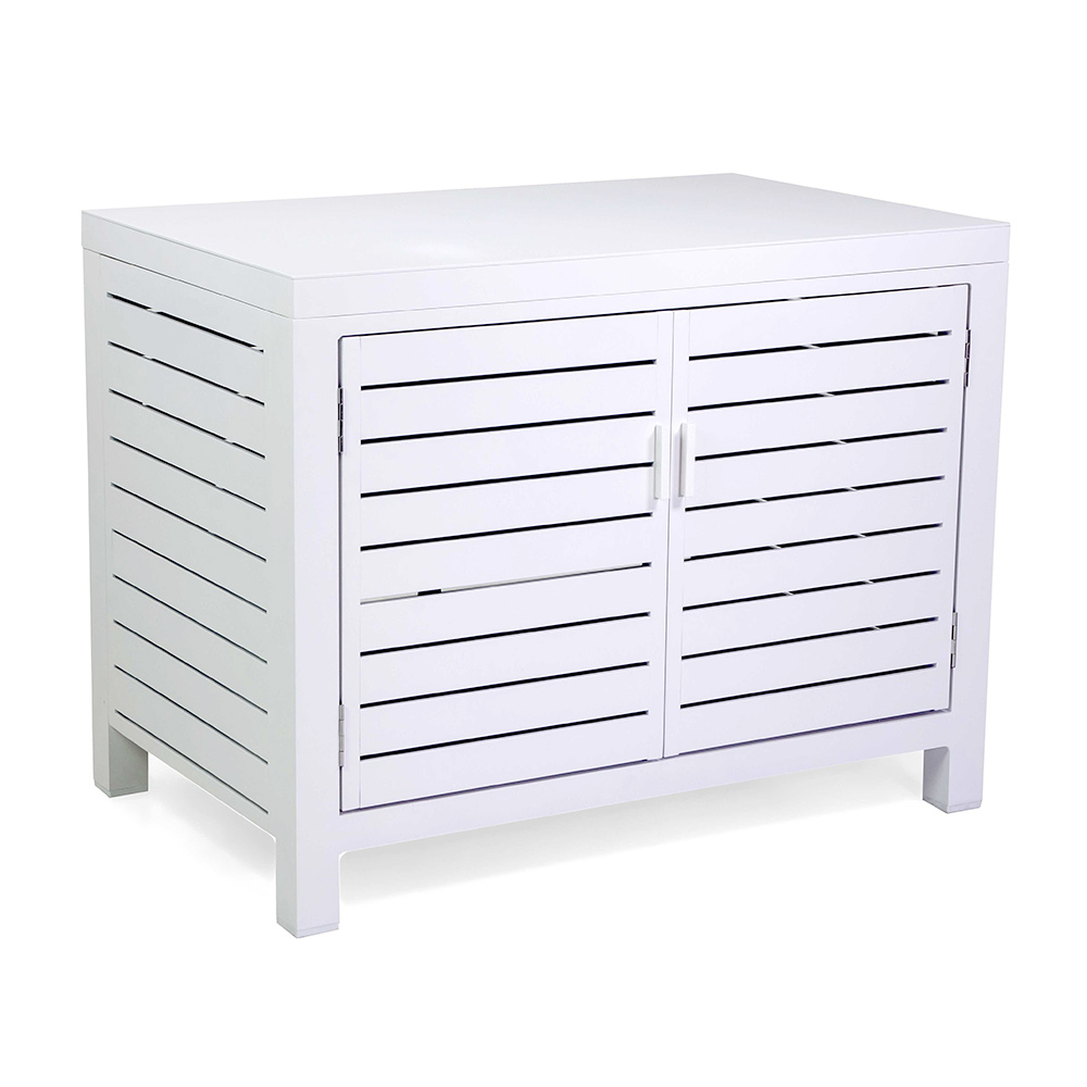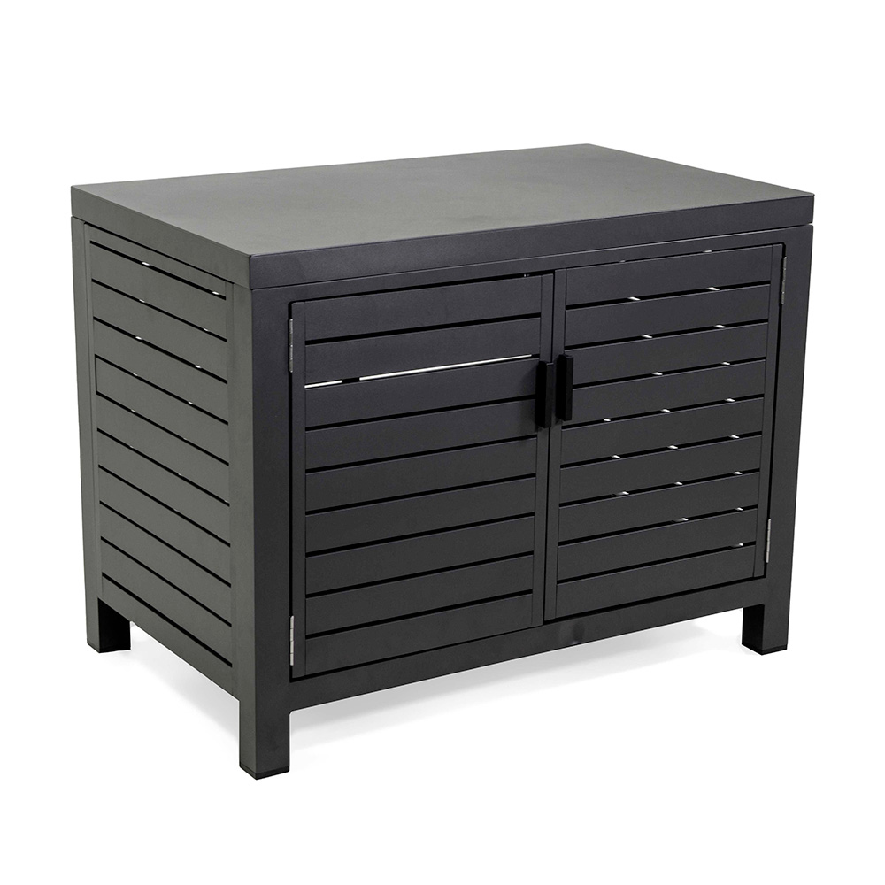 Tato skříňka má prostorné dveře, které se otevírají a odhalují velký úložný prostor, ideální pro uspořádání zahradních doplňků, polštářů nebo venkovního vybavení. Její robustní hliníková konstrukce s práškovým nástřikem zajišťuje trvanlivost a odolnost vůči povětrnostním vlivům, takže vaše investice zůstane rok co rok krásná a funkční. Tato skříň, která je ideální pro dodání nadčasového stylu, je ideální volbou pro ty, kteří hledají stylové a odolné úložné řešení.