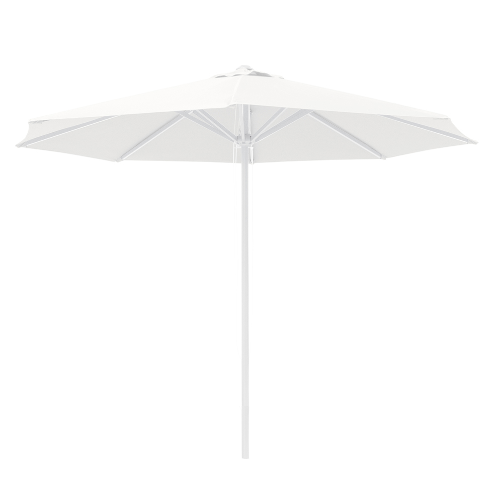 Venkovní deštník s hliníkovou konstrukcí a akrylovou tkaninou.