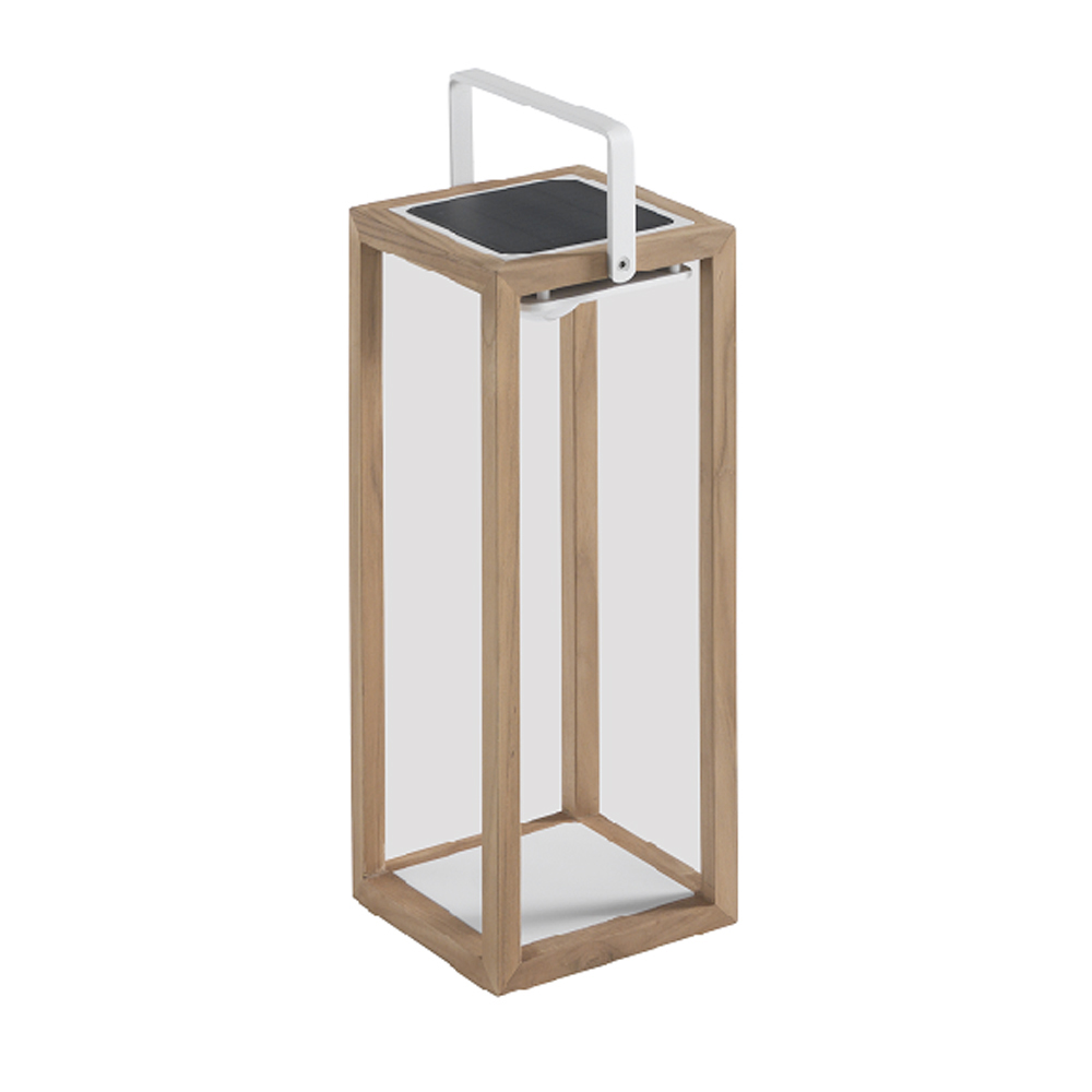 lakovaného hliníku nebo teaku dostupná s bílou strukturou a bílou rukojetí nebo s teakovou strukturou a bílou rukojetí. Světlo svítilny poskytují