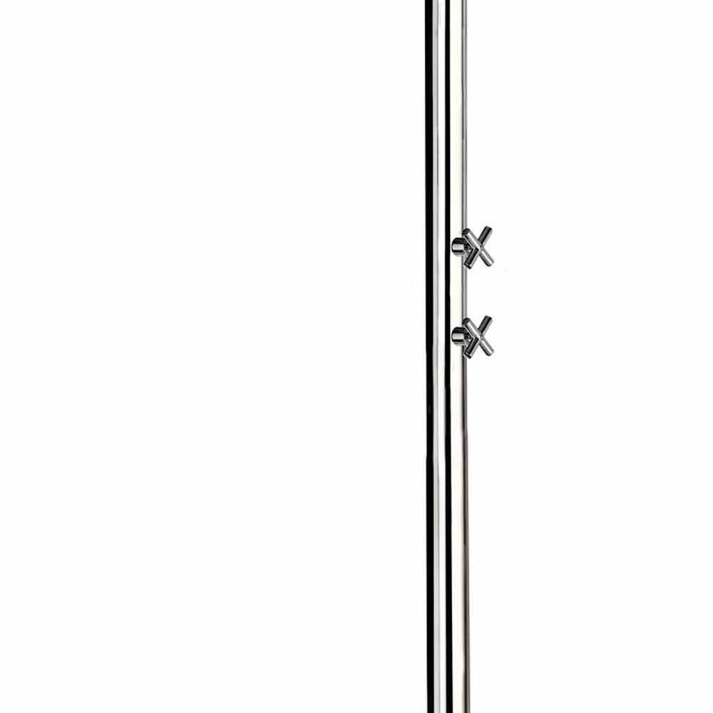 Venkovní sprcha z nerezové oceli s leštěnou povrchovou úpravou a myčkou nohou vyrobená v Itálii.