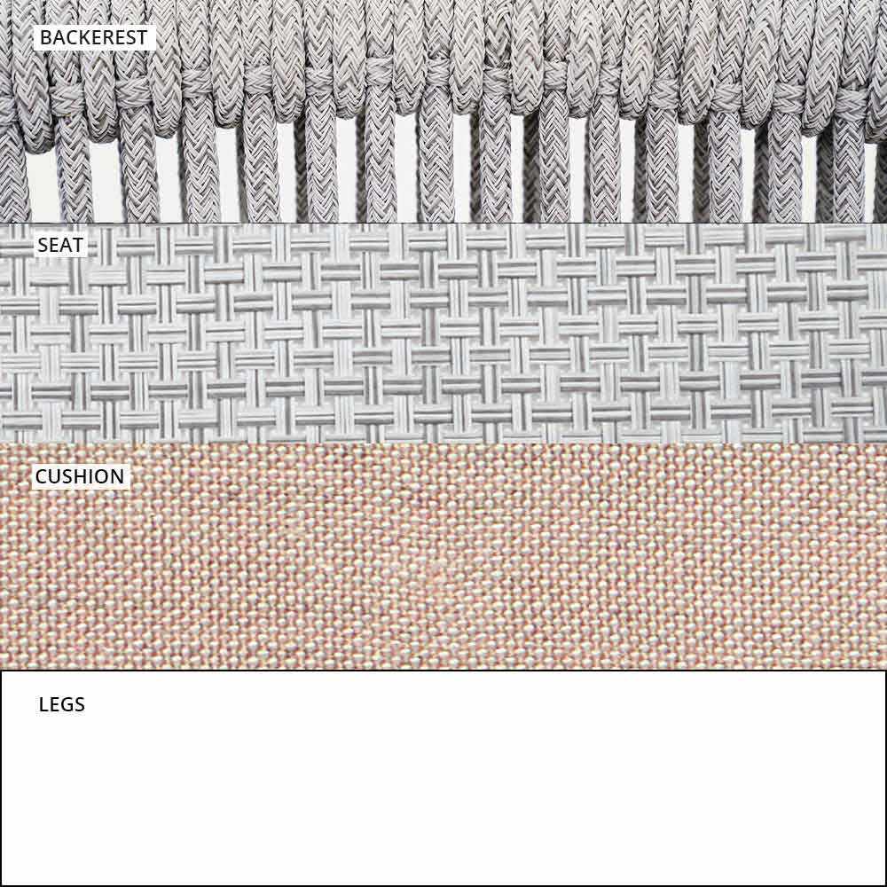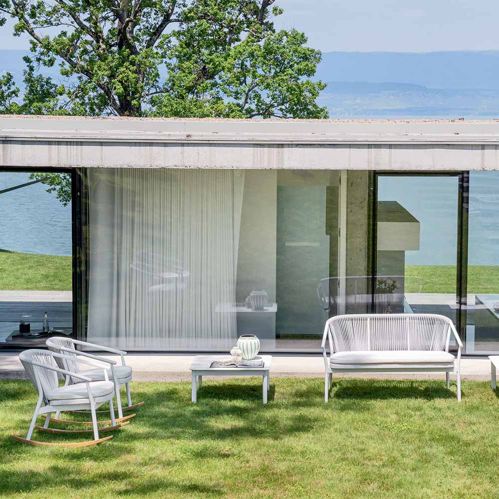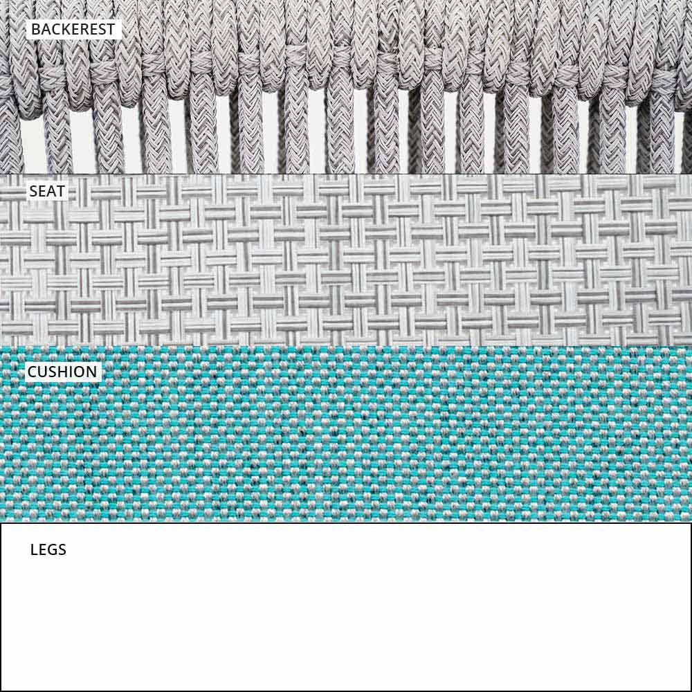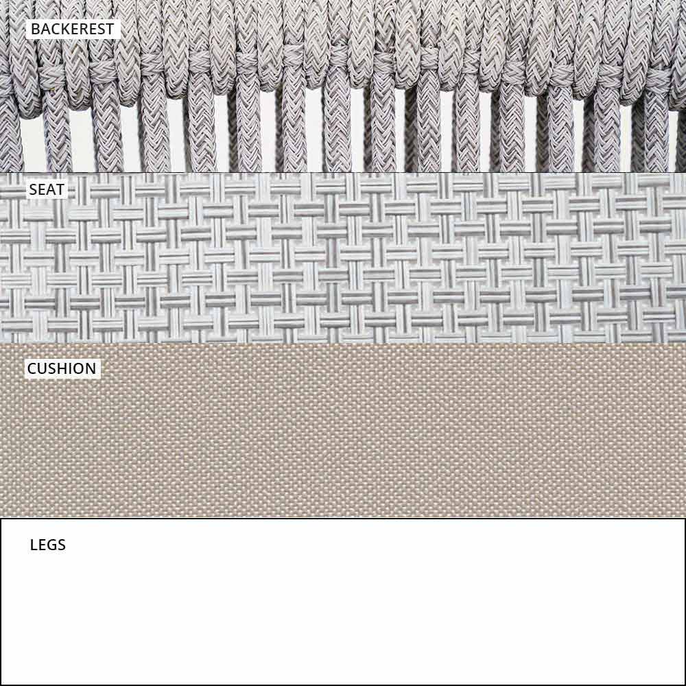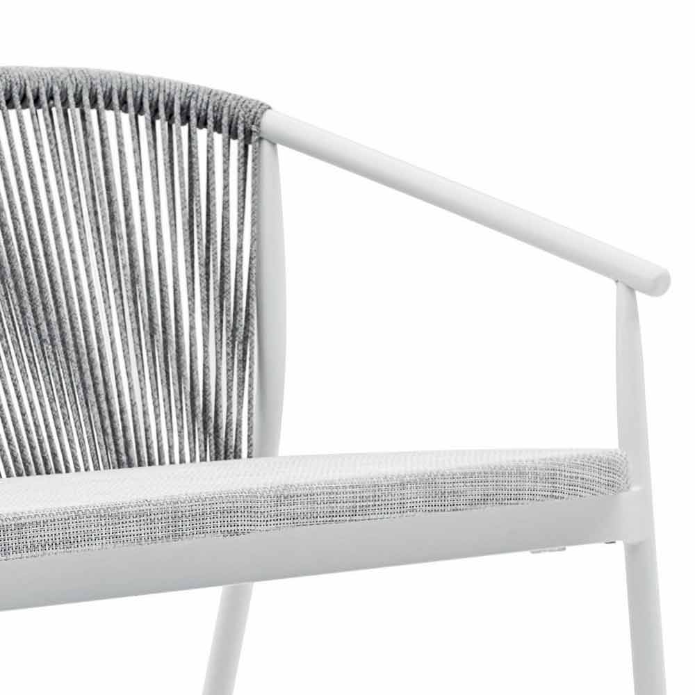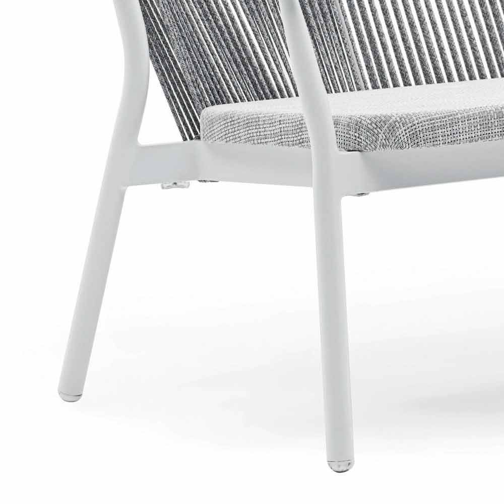 Propletení opěradla ze syntetického kabelu VAR # TEX zvyšuje estetiku této pohovky, která je navržena tak, aby si mohla užívat venkovní dny ve společnosti.