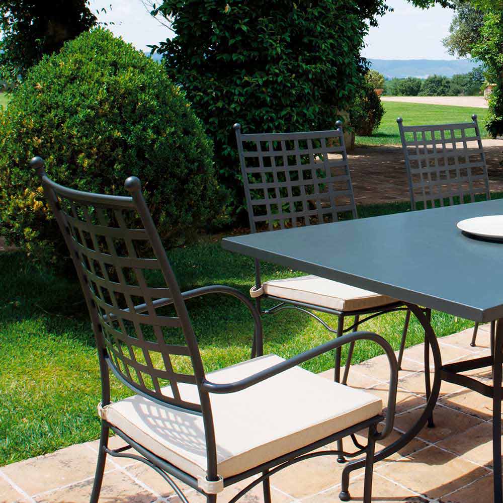 venkovní křesla představují dokonalou kombinaci klasických linií a modernějšího stylu, který je dán použitými barvami a technikami. Jsou kompletně vyrobena v Itálii z pozinkovaného plechu s práškovým nástřikem a termosetovými prášky. Každé křeslo je neuvěřitelně pevné a odolné a zároveň si zachovává lehký design, jednoduché linie a značnou funkčnost. Ideální do soukromých prostor, jako jsou zahrady a terasy, ale také do barů a restaurací, kde mohou dodat osobnost a charakter a zároveň optimalizovat prostor díky možnosti stohování dle potřeby.