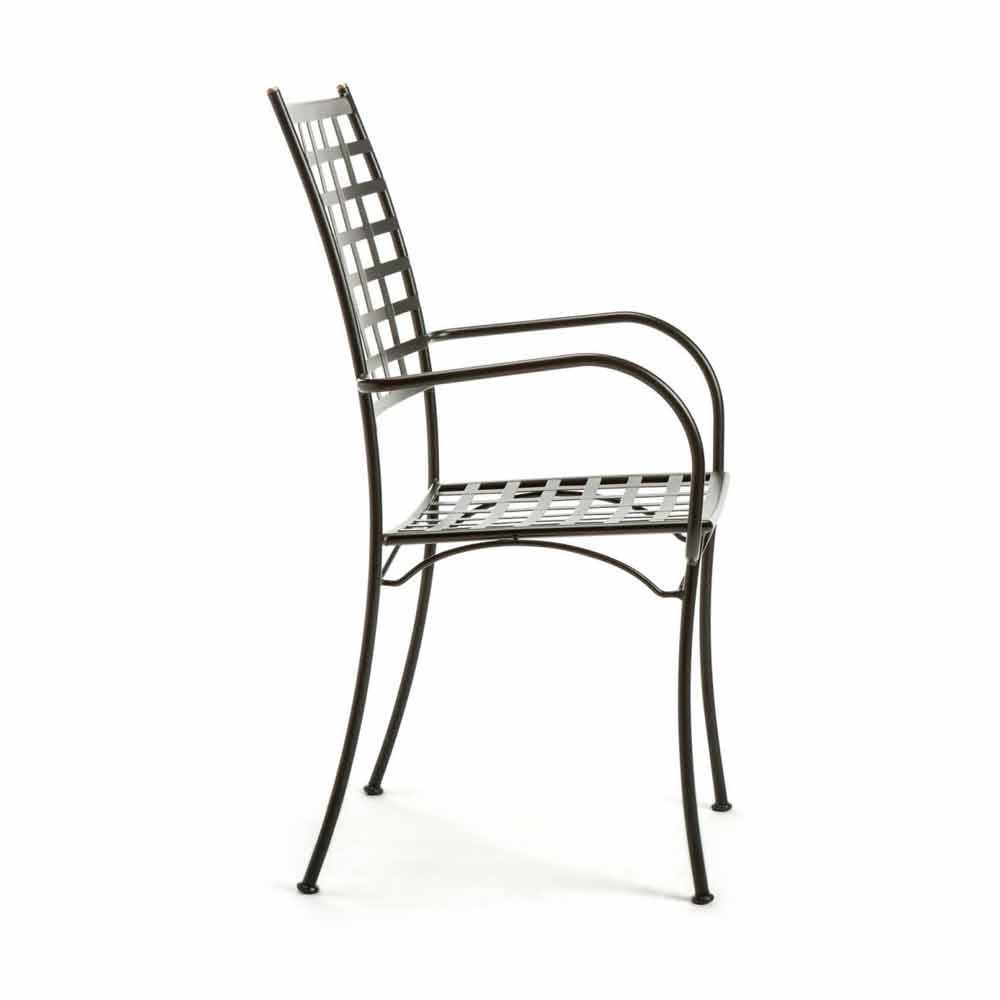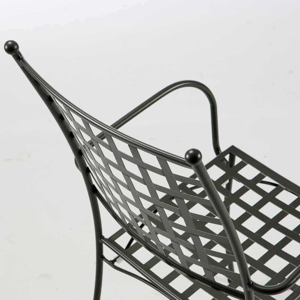 Venkovní křeslo z práškově lakovaného pozinkovaného železa s područkami, stohovatelné. Vyrobeno v Itálii, 4 kusy.