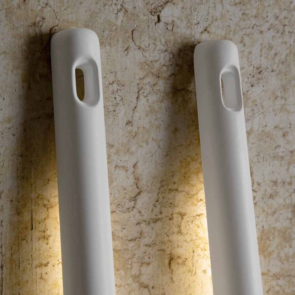 Lampa je vyrobena z neprůhledného bílého technopolymeru pro zcela italský design, který díky nekonvenčním experimentům a neustálému výzkumu mezi tradicí a moderností dokáže ohromit, odvážit se a vzrušit, což vám umožní vyjádřit své emoce originálním a osobním použitím. dekorativní světlo.
