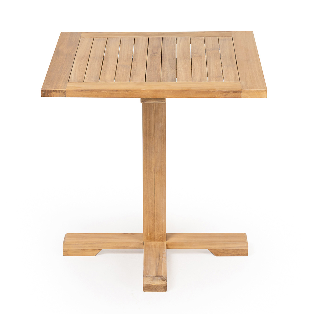 Zahradní stůl s centrální nohou z teakového dřeva různých velikostí.