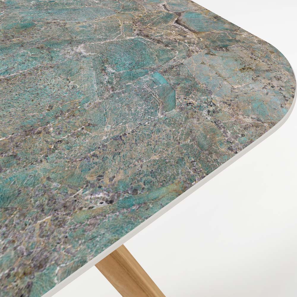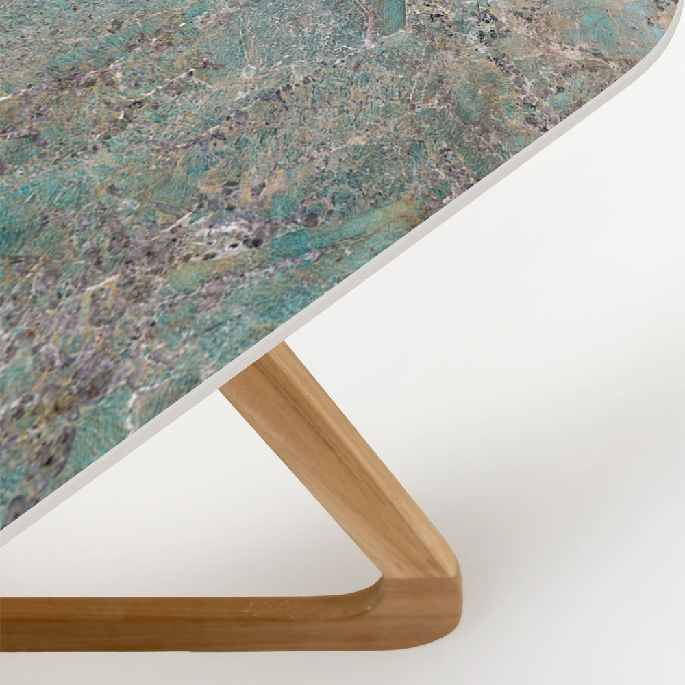 vyrobený v Itálii. Tento exkluzivní venkovní stůl je skutečným designovým skvostem, který kombinuje eleganci dřeva s moderností keramiky. Deska stolu, vyrobená z vysoce kvalitní keramiky s úžasným antickým zeleným odstínem, nabízí výjimečnou odolnost vůči povětrnostním vlivům a trvalou krásu.