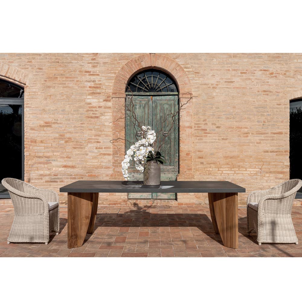 Tento stůl je dokonalou kombinací elegance a robustnosti, designovým kouskem, který se perfektně hodí do interiéru i exteriéru. Jeho