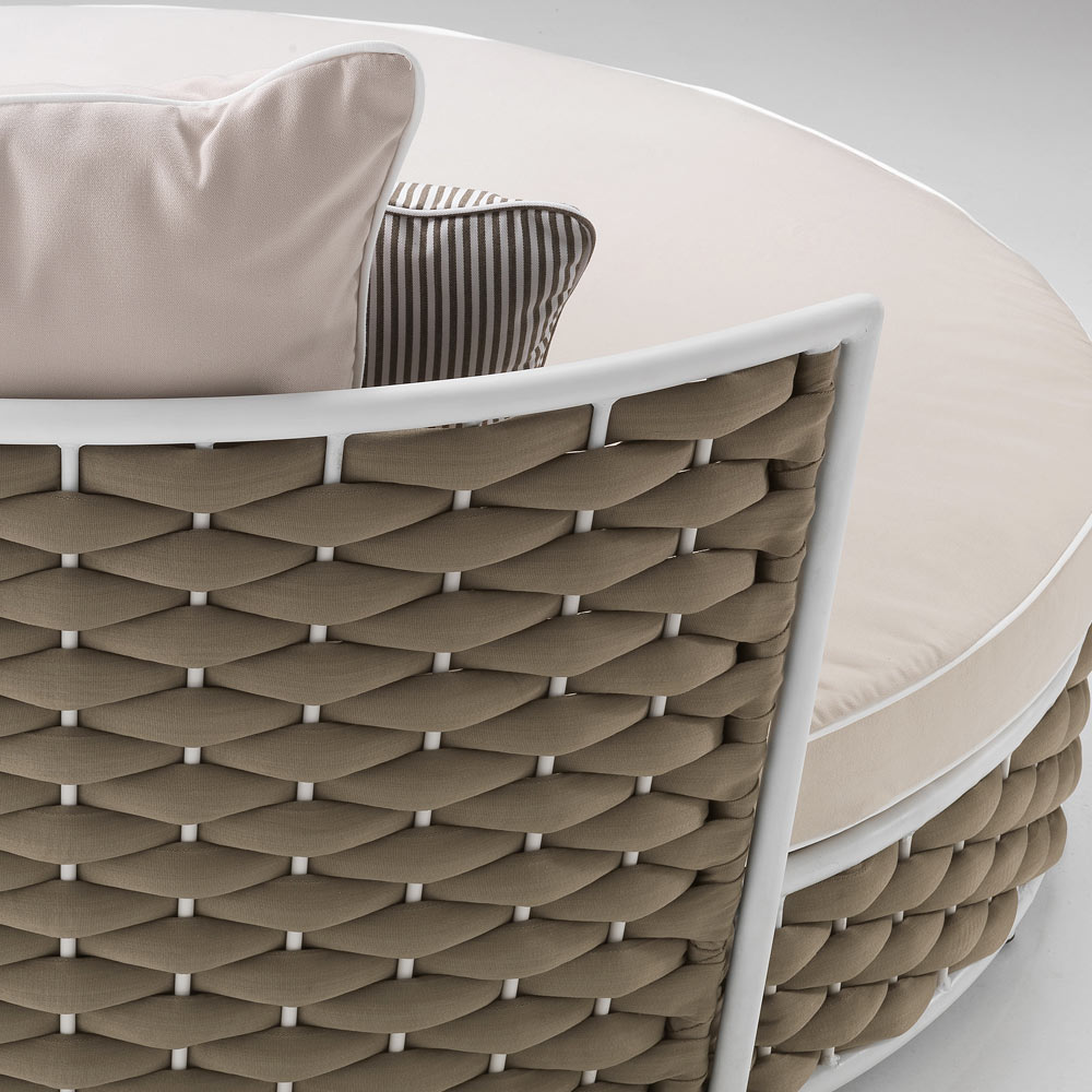 Konstrukce tohoto lehátka je snadno ovladatelná a pevná, ale zároveň si zachovává čistý design. Jeho moderní styl mu dodává výrazný charakter, díky čemuž je ideální pro vybavení venkovních prostor v soukromém i smluvním prostředí. NB : Polštáře na zakázku v široké škále látek a barev.
