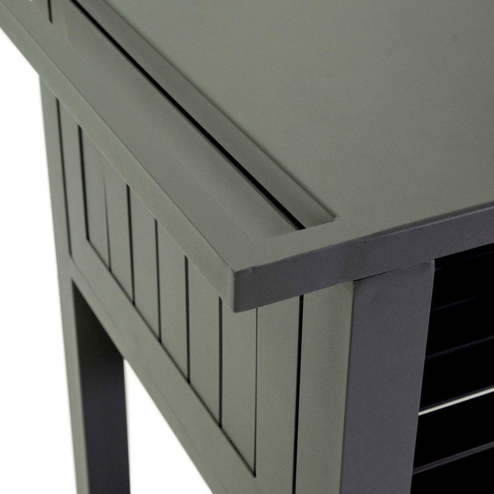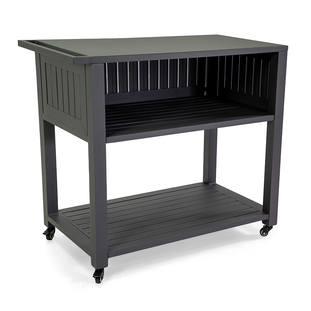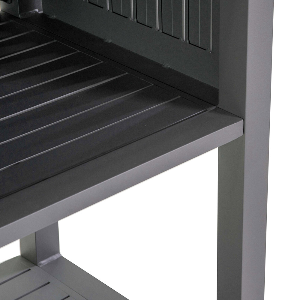 Nabízí pouhou pracovní a odkládací plochu , konstrukce zahrnuje praktickou horní polici pro přípravu a servírování, prostřední polici, abyste měli náčiní a příslušenství po ruce, a velkou spodní polici ideální pro uložení dalších zásob nebo velkého zahradního nářadí.