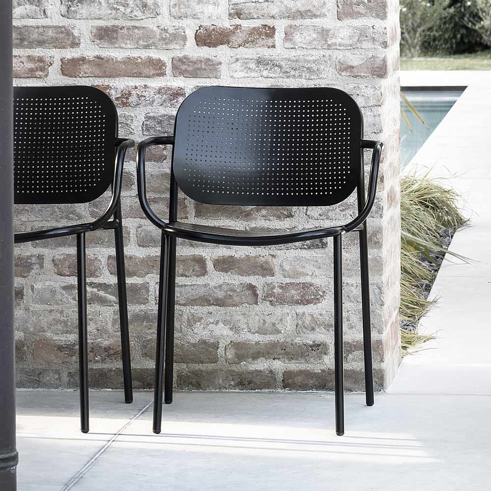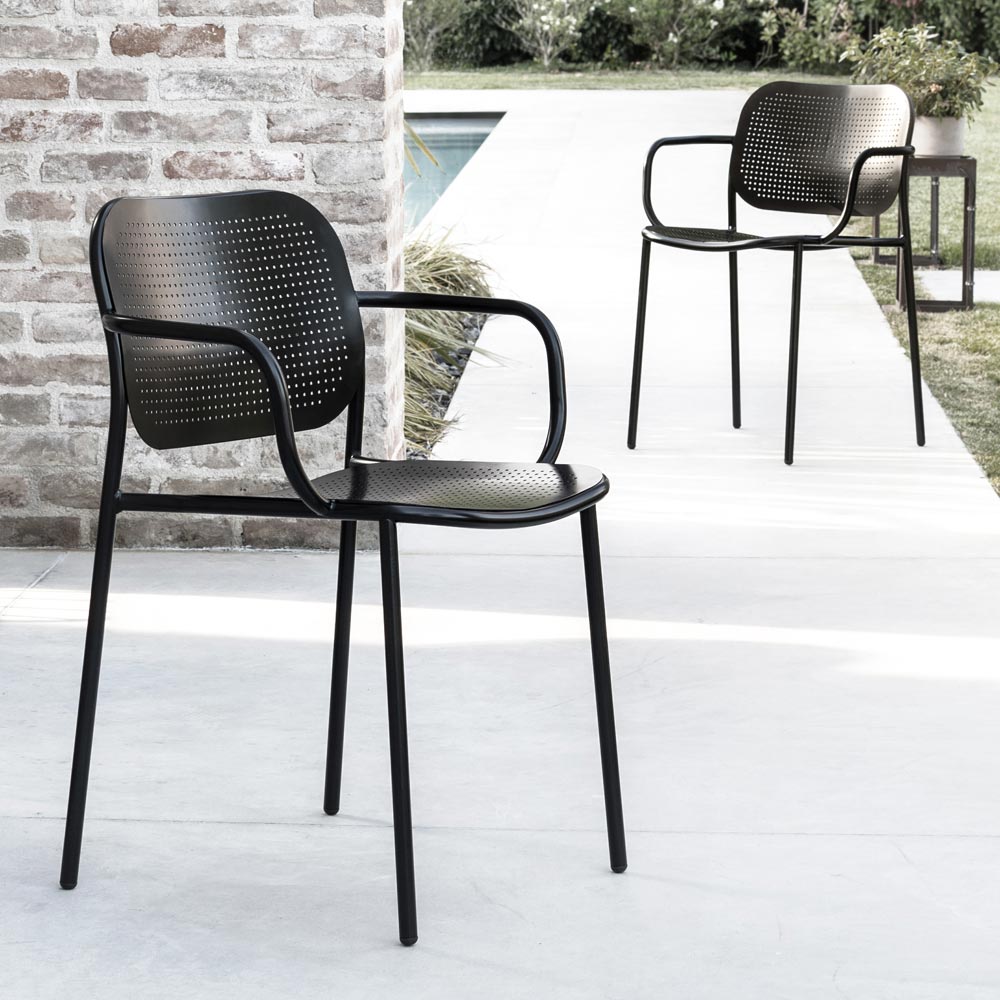 Zahradní židle z lakovaného kovu s područkami Made in Italy, 2 kusy.
