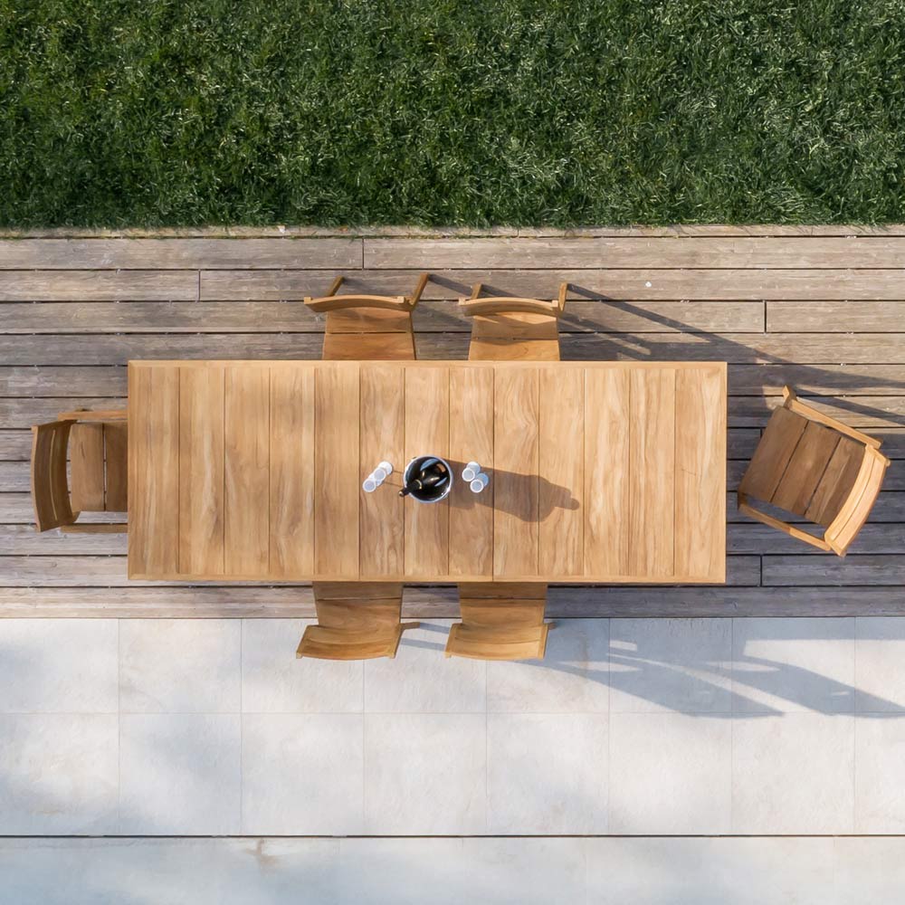 kvalitu a odolnost i s odstupem času a činí tento nábytkový doplněk ideálním pro každou situaci a příležitost použití. Kartáčovaná povrchová úprava zdůrazňuje strukturu a přirozené vlastnosti teakového dřeva.