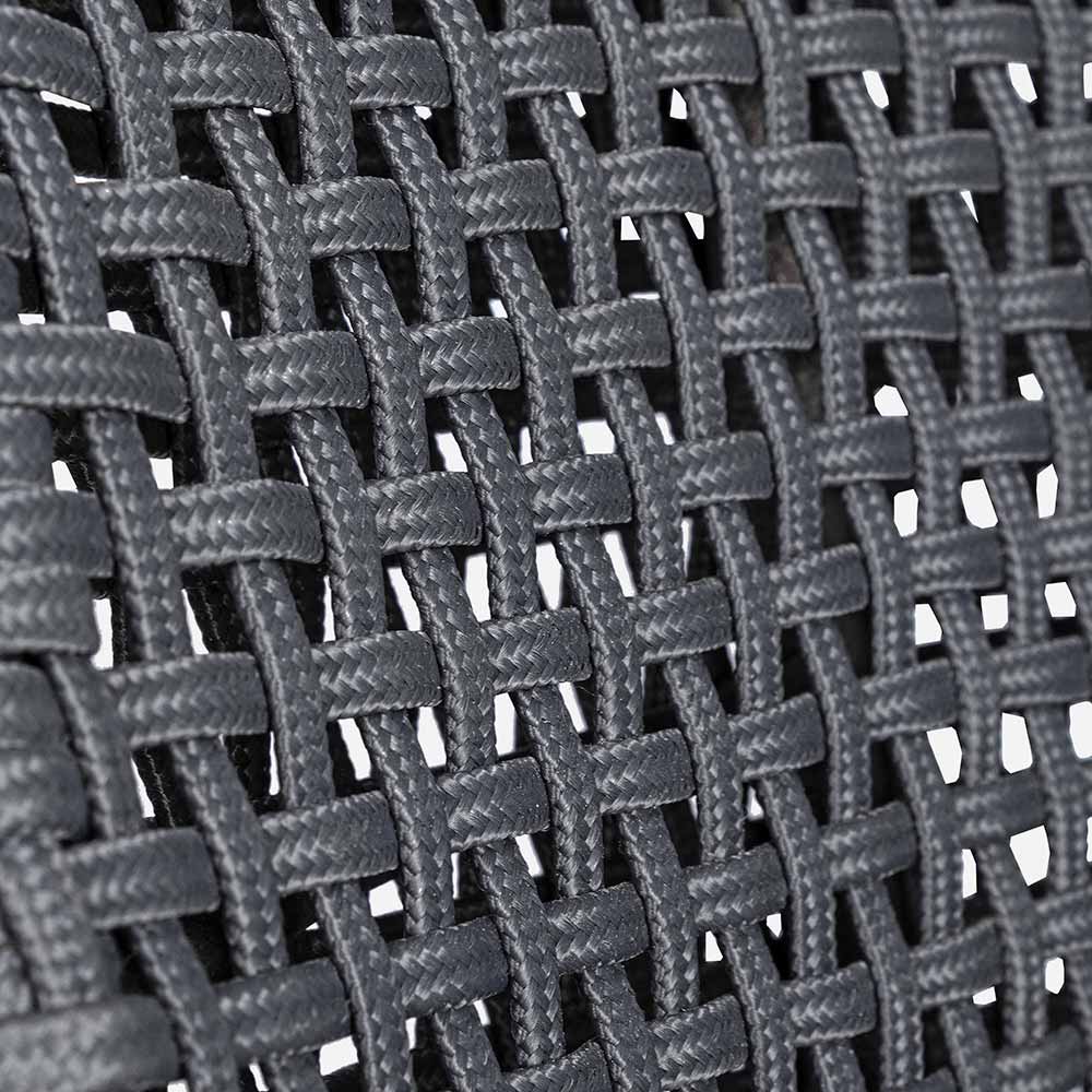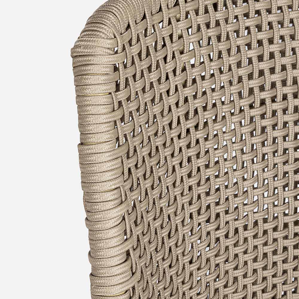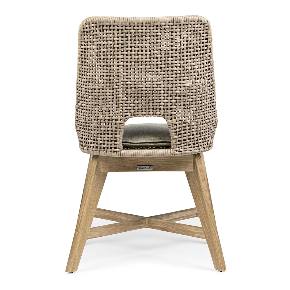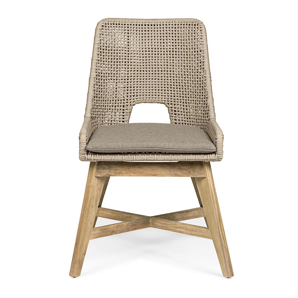 Venkovní židle s nohami z teakového dřeva a lanovým a látkovým sedákem, 2 kusy.