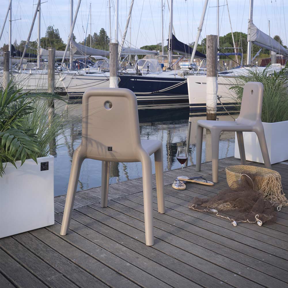 Díky použití polyetylenu a malým rozměrům je tato židle mimořádně všestranná , podtržená jejími tekutými a rozlišitelnými vlastnostmi. Představuje příležitost obohatit každý typ prostředí, vnitřního i venkovního, ideální pro vybavení relaxačních a odpočinkových zón.