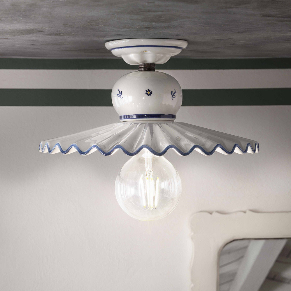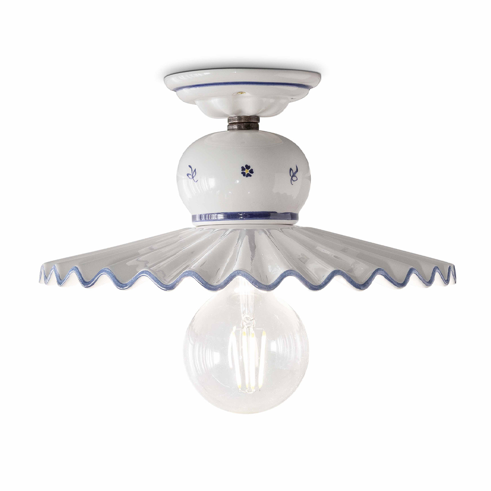 Ručně vyráběné stropní svítidlo z kovu a ručně malované keramiky, 2 velikosti vyrobené v Itálii společností Ferroluce.