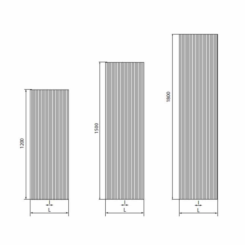 Dostupné v různých velikostech *:- V 1200 x D 420 x Inter. 50 mm x výkon w (Δt50 *) 540; Výtěžek w (At30 *) 277; Výtěžek w (A26 *) 234;