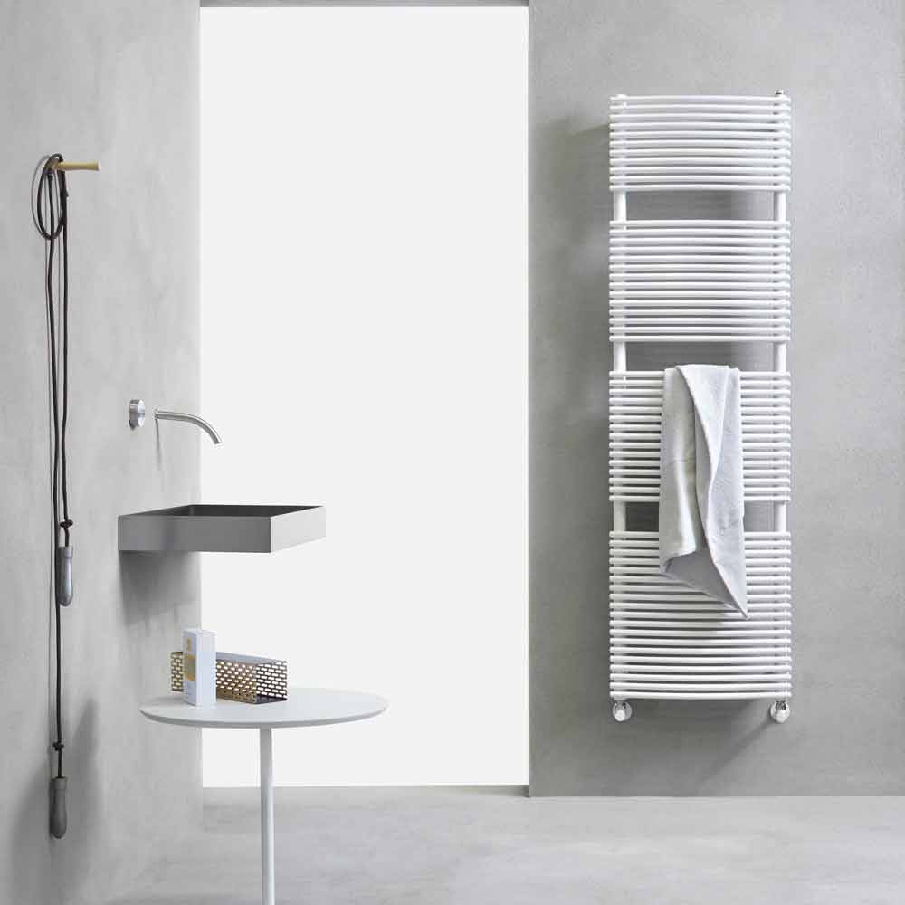 Ohřívač ručníků do koupelny s designem svislé ocelové stěny vyrobený v Itálii.