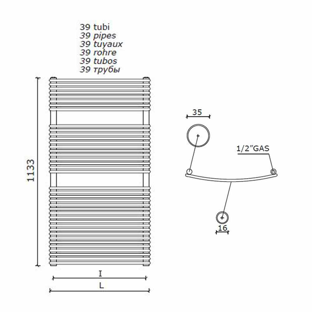 - V 1707 x L 505 x mez. 450 mm x výkon w (Δt50 *) 1013; Výtěžek w (At50 *) 534; Výtěžek w (Δt50 *) 446