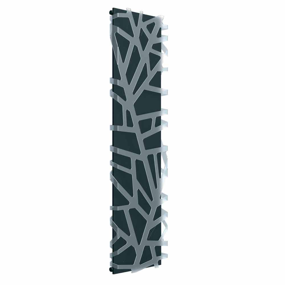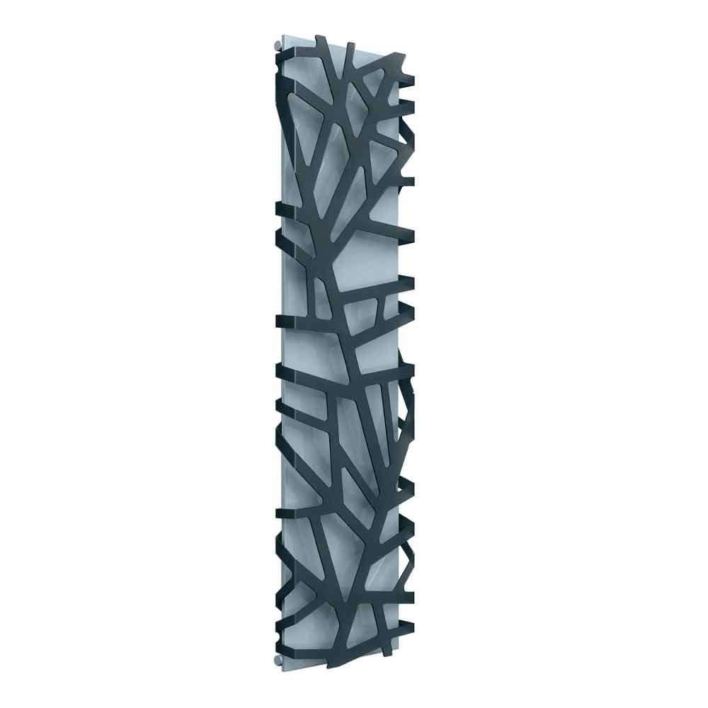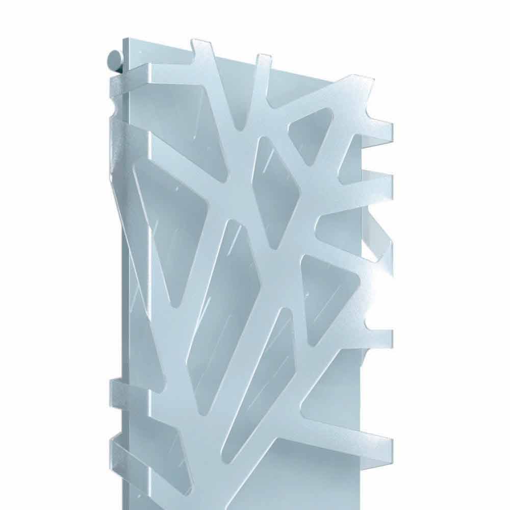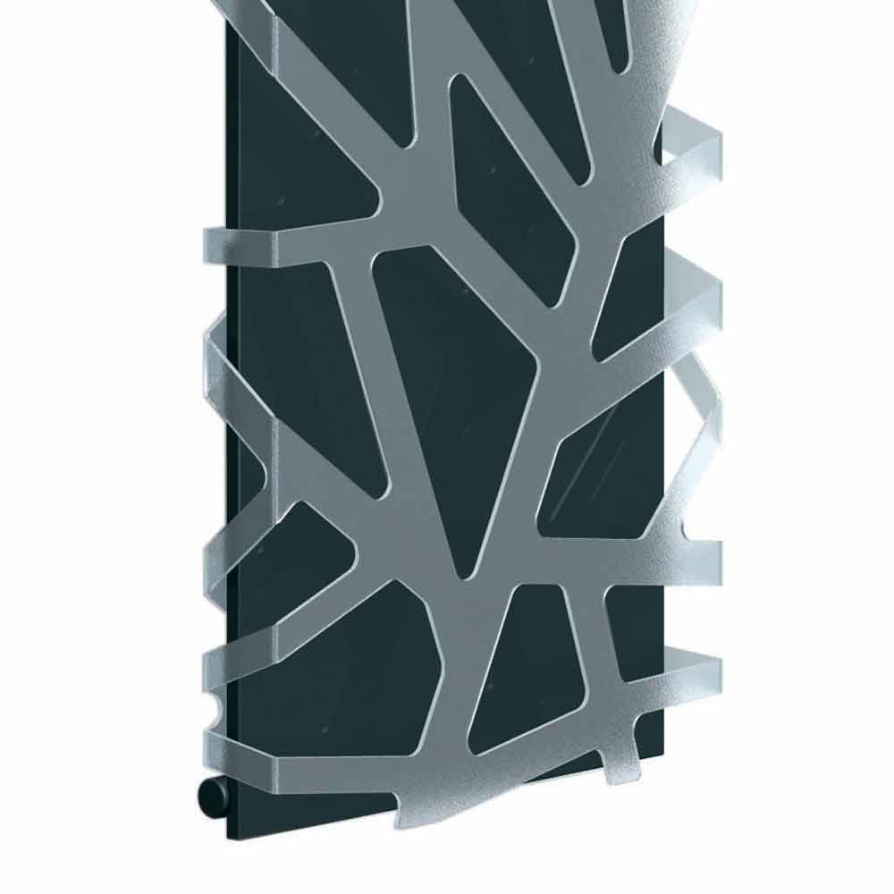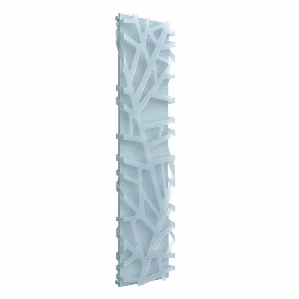 Moderní designový vertikální nástěnný radiátor z oceli a methakrylátu vyrobený v Itálii.