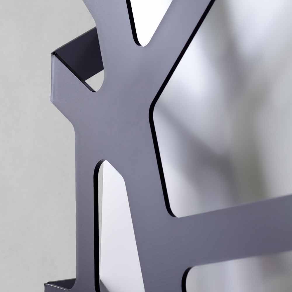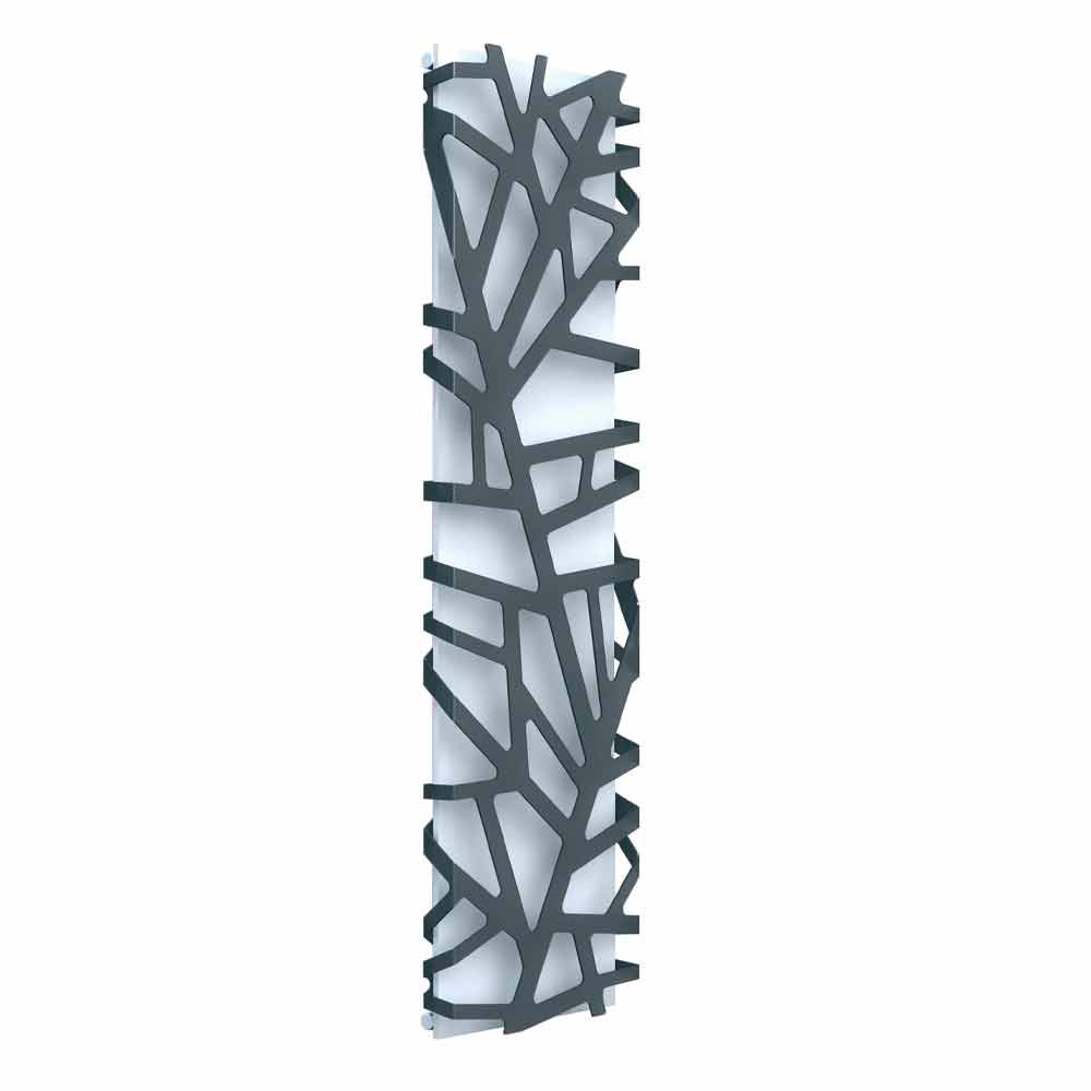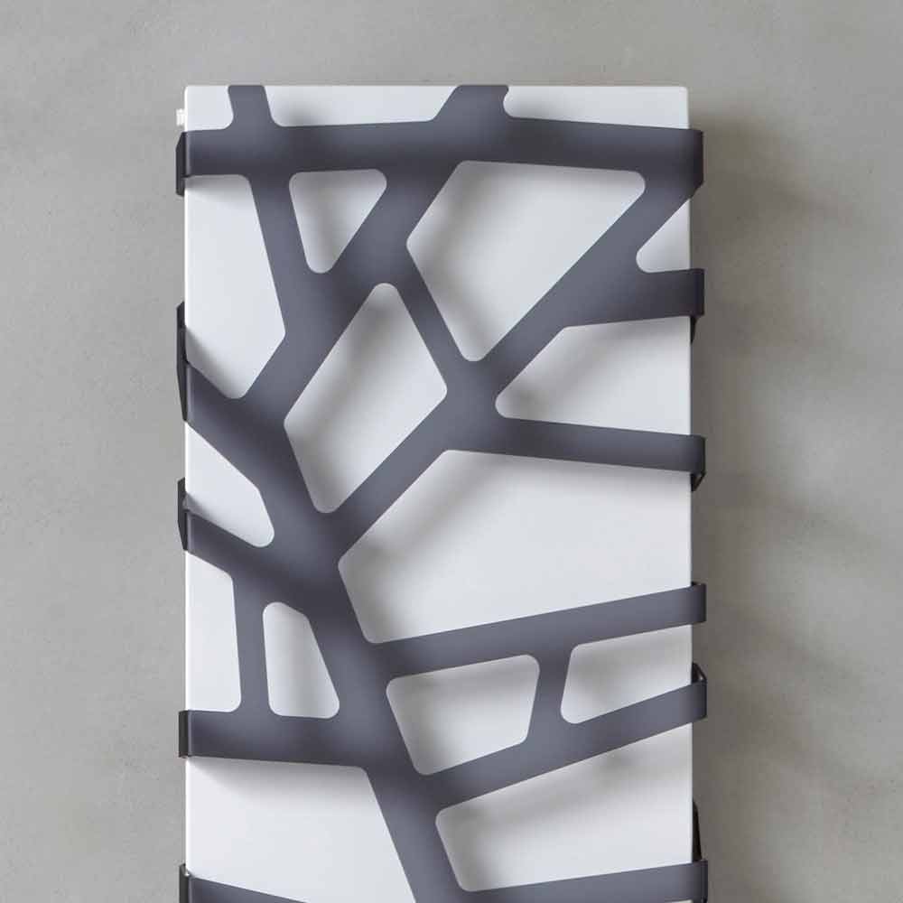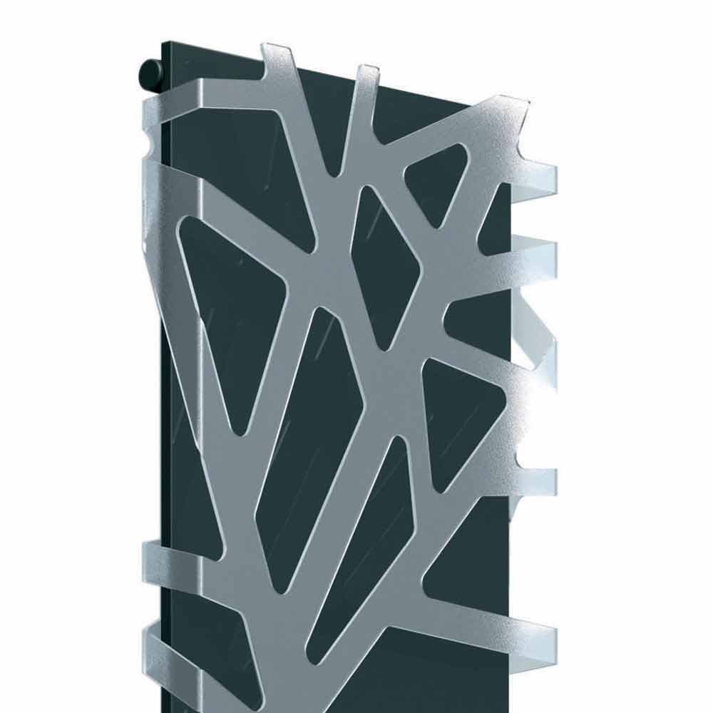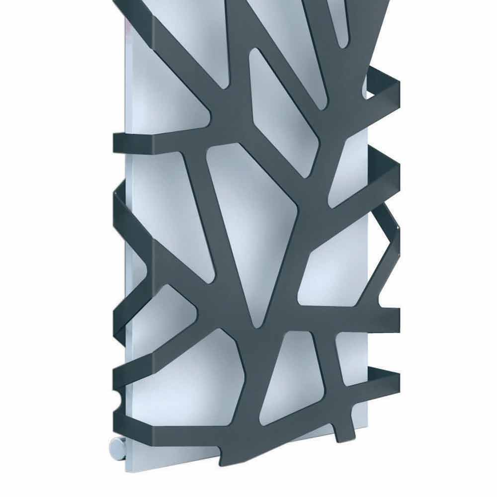 Moderní designový vertikální nástěnný radiátor z oceli a methakrylátu vyrobený v Itálii.