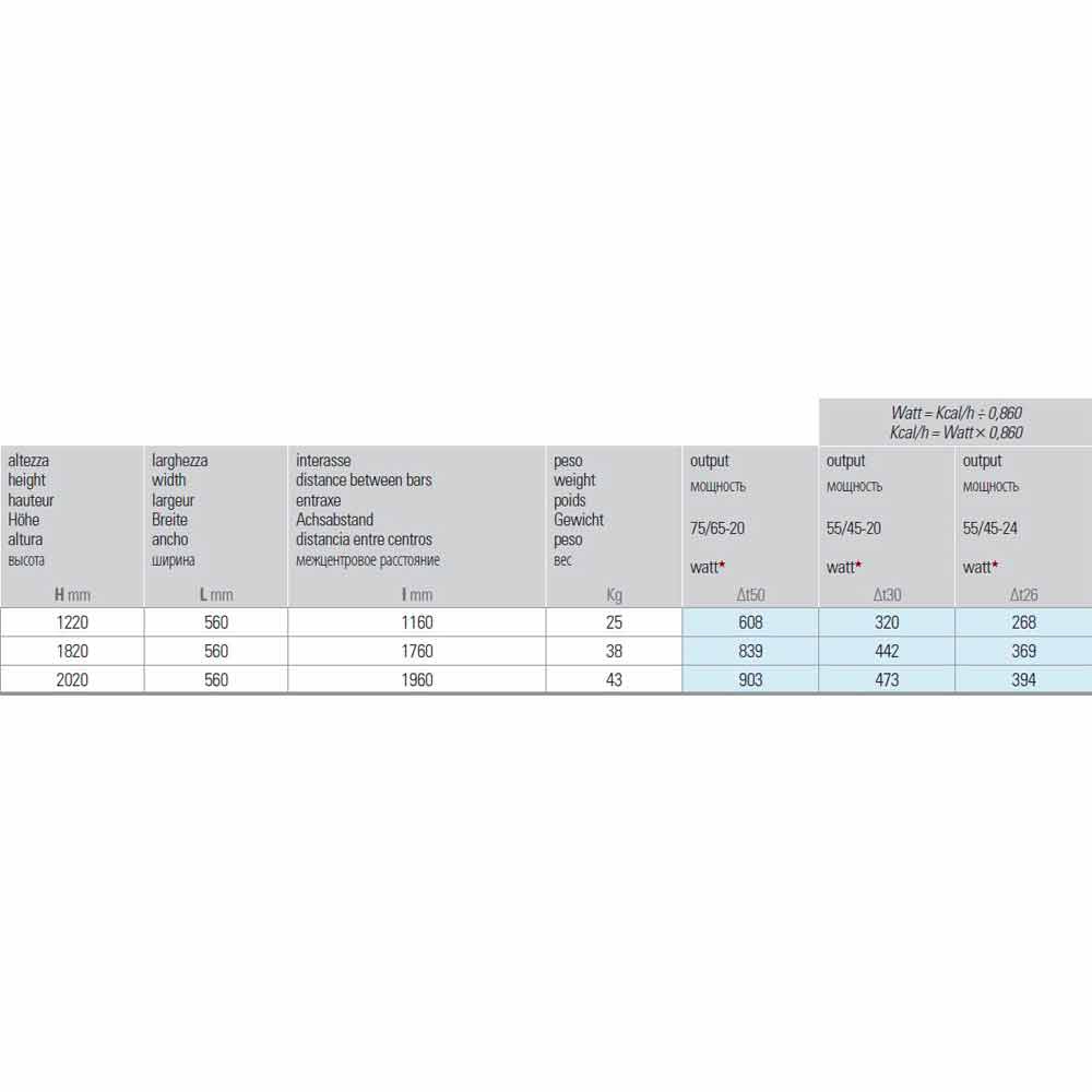 - V 1820 x D 560 x Inter. 1760 mm x výstup w (Δt50 *) 839; Výtěžek w (At30 *) 442; Výtěžek w (At26 *) 369