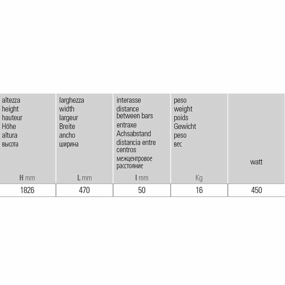 Jedná se o hliníkový radiátor se základnou z nerezové oceli vhodný pro moderní prostředí, vyrobený zcela v Itálii , hodnota radiátoru je určena hodnotami, jako je celková kvalita, servis na nejvyšší úrovni, snaha o vždy inovativní, ale funkční design a respekt pro životní prostředí nejen při vývoji produktů s nízkým dopadem na životní prostředí, ale také ve fázi výroby.