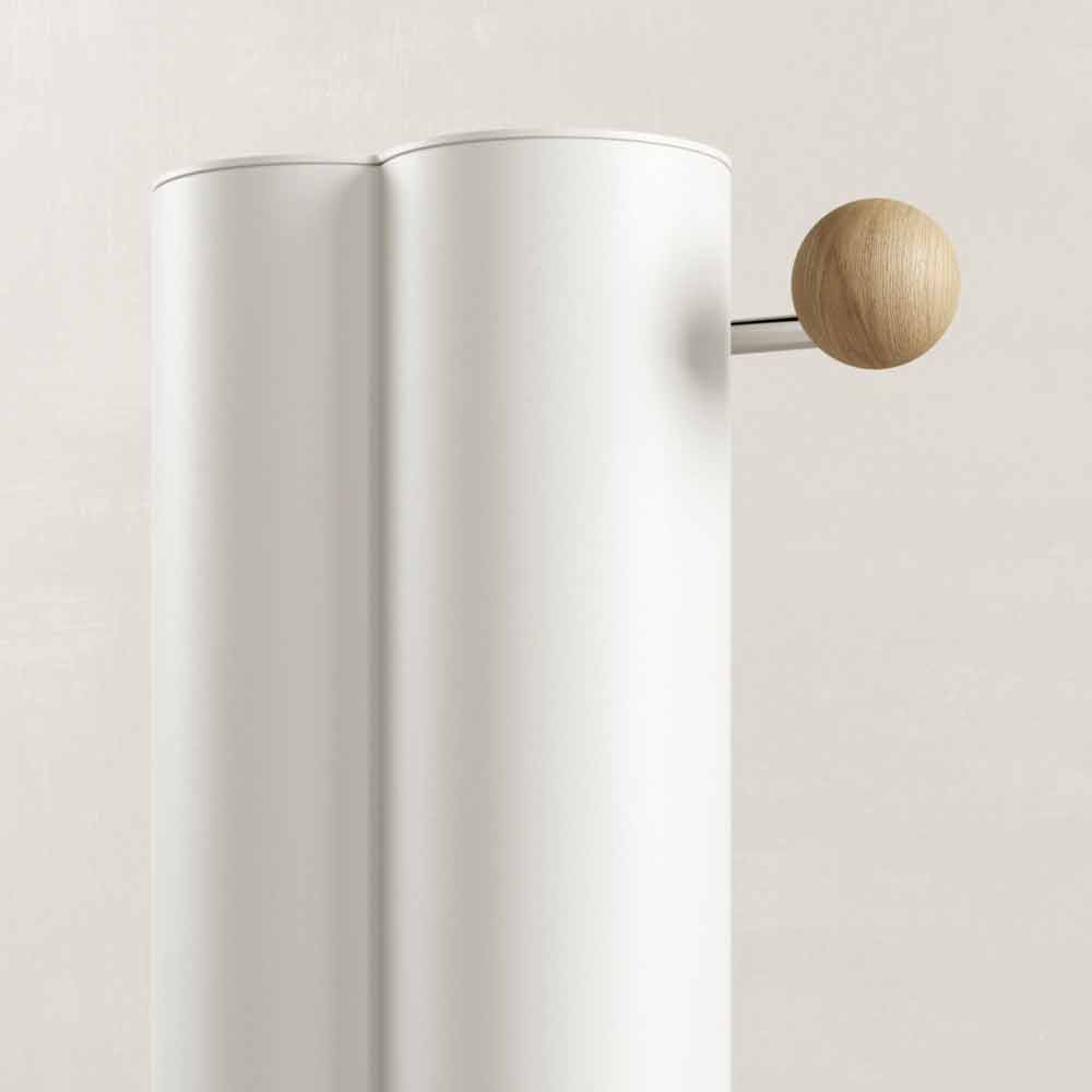 Kromě rozevírací nabídky je k dispozici v různých povrchových úpravách , doplněk obsahuje držák na ručníky 90 cm od země a knoflík z přírodního buku, který je zahrnut v ceně a dodává se standardně již namontovaný na radiátoru. Lištu a knoflík lze připevnit vpravo nebo vlevo: zvolte požadovanou orientaci.